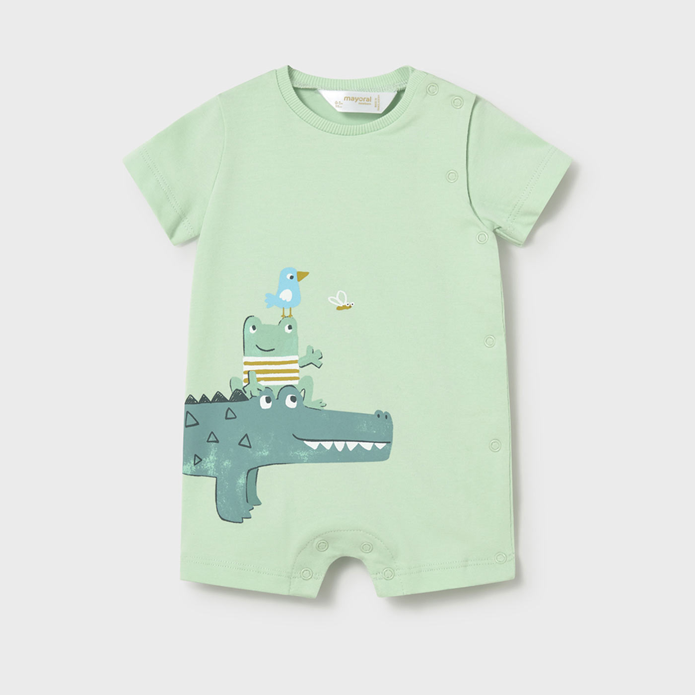 Το βρεφικό σετ φορμάκια Mayoral 3 τεμαχίων σε αποχρώσεις πράσινου και λευκού αποτελεί ιδανική επιλογή για την καθημερινή άνεση και φροντίδα του μωρού σας. Με χαρούμενα παιδικά σχέδια ζώων και απαλή υφή, προσφέρει πρακτικότητα, στυλ και ασφάλεια από τις πρώτες ημέρες ζωής.