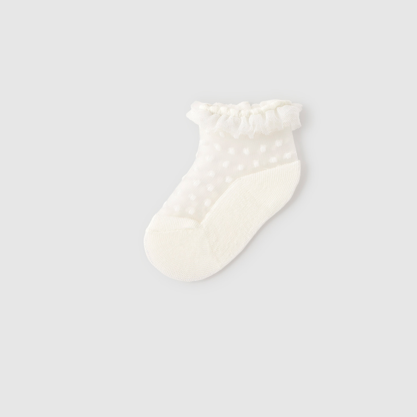 Τα βρεφικά καλτσάκια Mayoral σε απαλό εκρού χρώμα αποτελούν την ιδανική επιλογή για να ολοκληρώσετε με κομψότητα και άνεση κάθε βρεφικό outfit. Σχεδιασμένα ειδικά για κοριτσάκια, συνδυάζουν πρακτικότητα με ρομαντική αισθητική, χάρη στο διακριτικό πουά σχέδιο και το φίνο τελείωμα με βολάν από τούλι στο επάνω μέρος.