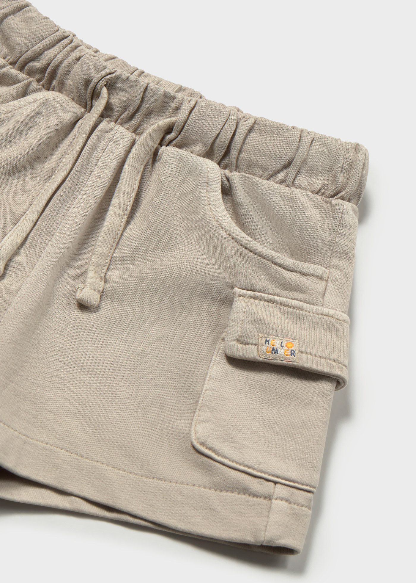 Η βρεφική βερμούδα Mayoral σε διαχρονική μπεζ απόχρωση είναι ιδανική για άνετες και στιλάτες καλοκαιρινές εμφανίσεις. Κατασκευασμένη από μαλακό βαμβακερό ύφασμα, προσφέρει εξαιρετική αίσθηση στο δέρμα και ελευθερία κινήσεων, καλύπτοντας απόλυτα τις ανάγκες του μωρού στην καθημερινότητά του.Διαθέτει ελαστική μέση με ρυθμιζόμενο κορδόνι για εύκολη εφαρμογή, καθώς και πλαϊνές cargo τσέπες με διακριτικό label Hello Summer, προσθέτοντας πρακτικότητα και παιχνιδιάρικο χαρακτήρα. Ο casual σχεδιασμός της την καθιστά ιδανική για παιχνίδι, βόλτες και διακοπές.