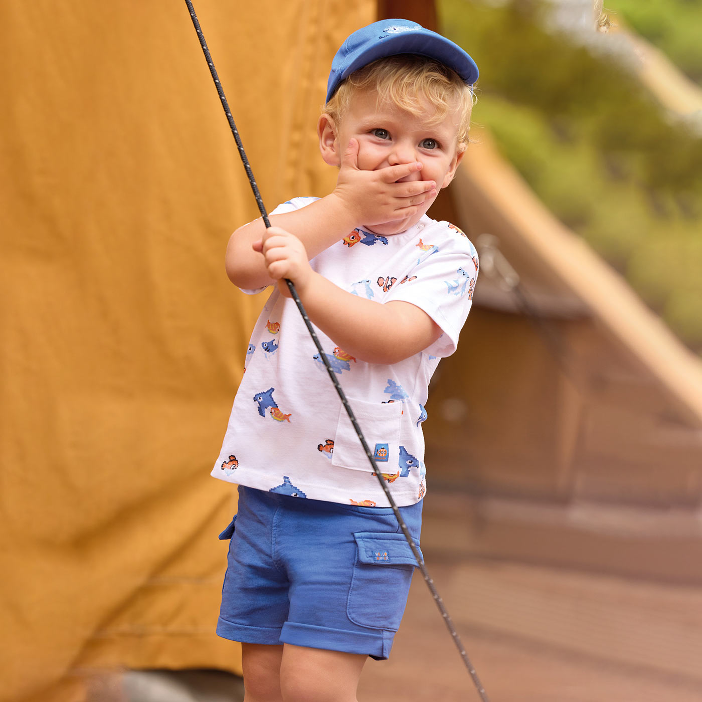 Η βρεφική βερμούδα Mayoral σε μοντέρνα μπλε ρουά απόχρωση είναι ιδανική για άνετες και στιλάτες καλοκαιρινές εμφανίσεις. Κατασκευασμένη από μαλακό βαμβακερό ύφασμα, προσφέρει εξαιρετική αίσθηση στο δέρμα και ελευθερία κινήσεων, καλύπτοντας απόλυτα τις ανάγκες του μωρού στην καθημερινότητά του.Διαθέτει ελαστική μέση με ρυθμιζόμενο κορδόνι για εύκολη εφαρμογή, καθώς και πλαϊνές cargo τσέπες με διακριτικό label Hello Summer, προσθέτοντας πρακτικότητα και παιχνιδιάρικο χαρακτήρα. Ο casual σχεδιασμός της την καθιστά ιδανική για παιχνίδι, βόλτες και διακοπές.