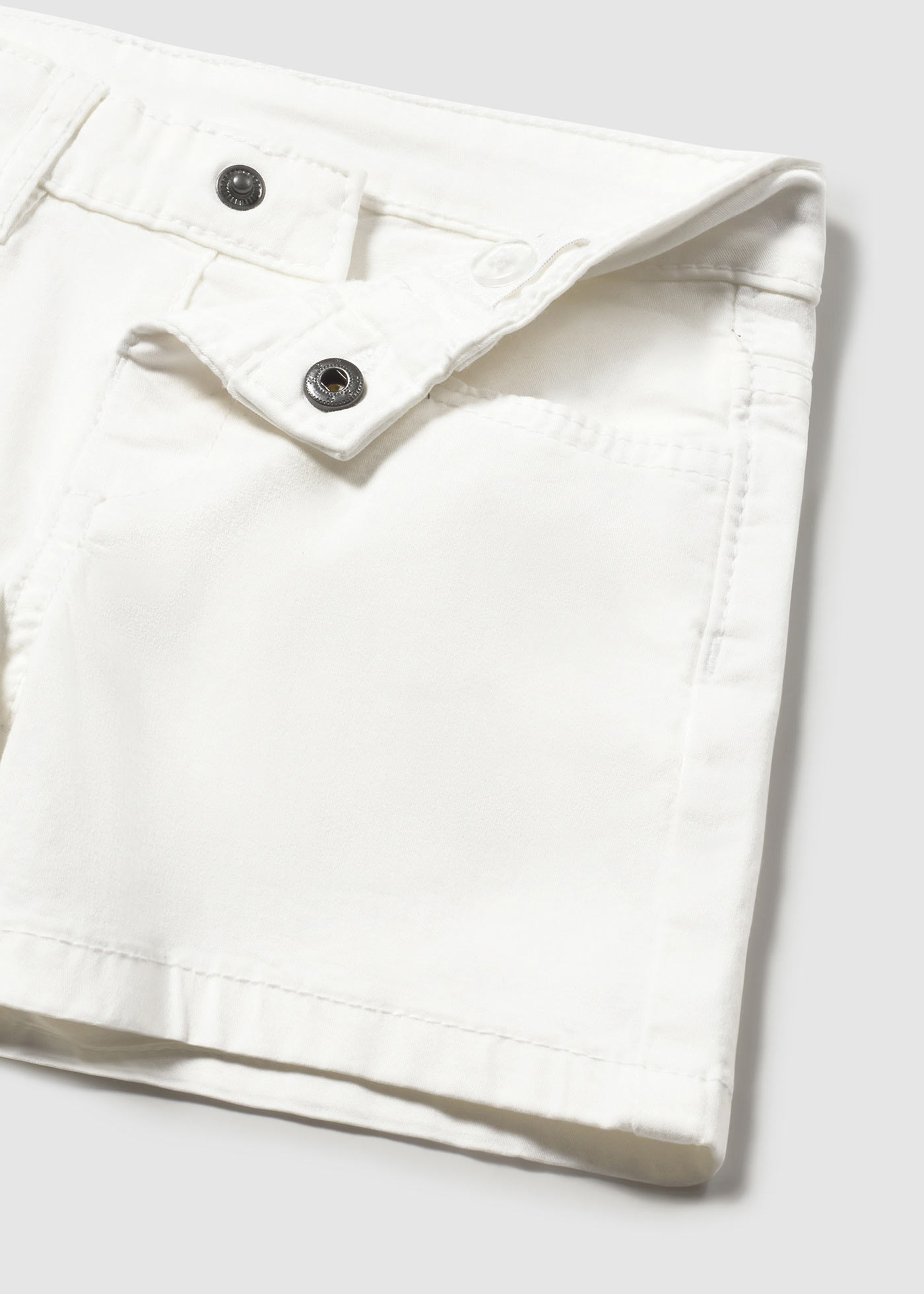 Η βρεφική βερμούδα Mayoral σε κομψό λευκό καπαρτινέ είναι ένα διαχρονικό και ευέλικτο κομμάτι, ιδανικό για καλοκαιρινές εμφανίσεις με άνεση και στυλ. Κατασκευασμένη από μαλακό και ανθεκτικό ύφασμα, προσφέρει άριστη εφαρμογή και ελευθερία κινήσεων για το μωρό σας, από τις καθημερινές βόλτες έως πιο ιδιαίτερες περιστάσεις.Διαθέτει κλασικό σχέδιο τύπου chino, με κουμπί και φερμουάρ, θηλιές για ζώνη και λειτουργικές τσέπες μπροστά και πίσω, χαρίζοντας κομψή εμφάνιση που συνδυάζεται εύκολα με μπλουζάκια, πουκάμισα ή πόλο.