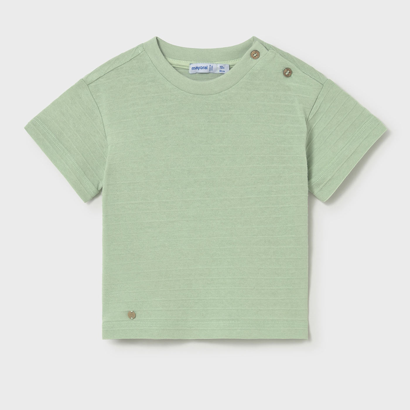 Απαλή, δροσερή και κομψή βρεφική μπλούζα μακό για αγόρια Mayoral σε μοντέρνα φυστικί απόχρωση, ιδανική για άνετες και προσεγμένες καθημερινές εμφανίσεις. Ένα basic αλλά ιδιαίτερο κομμάτι που δεν πρέπει να λείπει από τη βρεφική γκαρνταρόμπα.