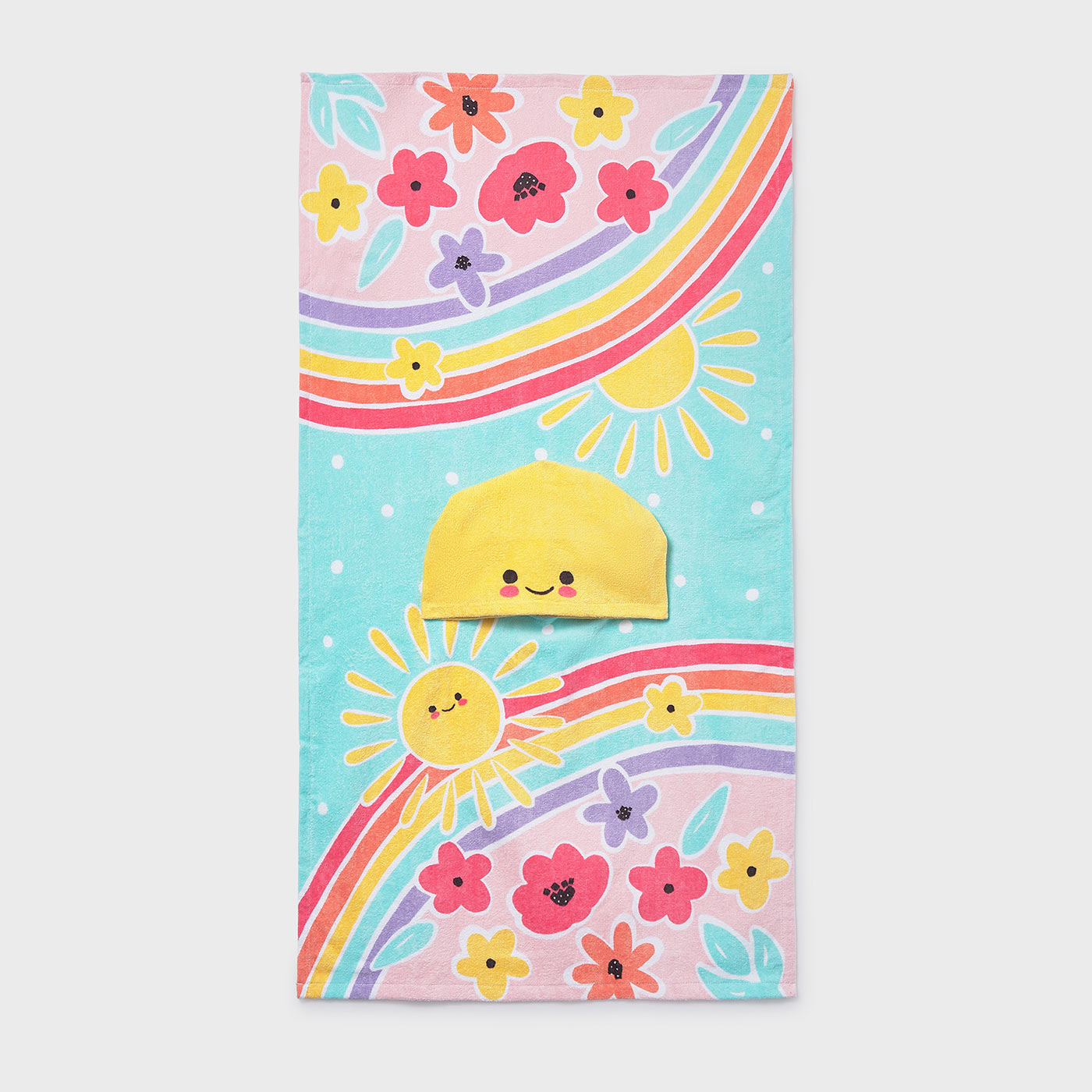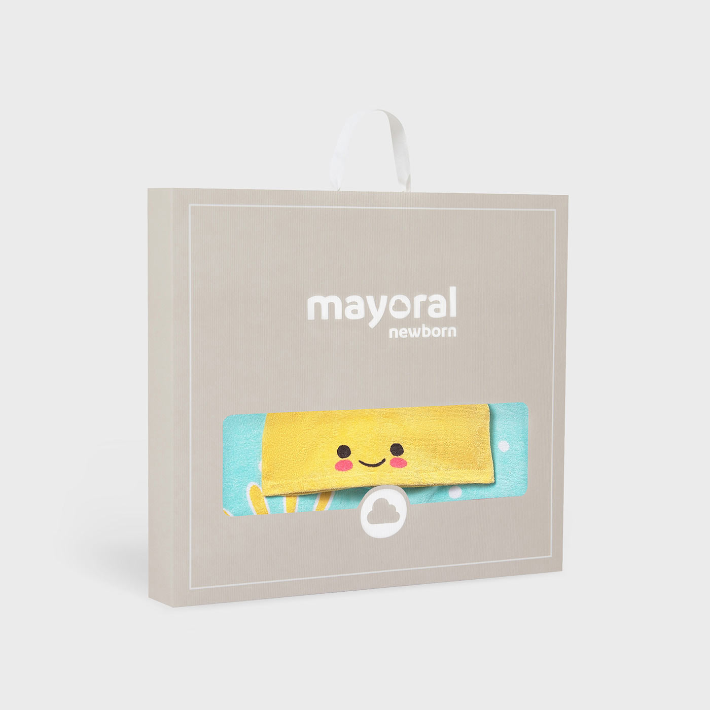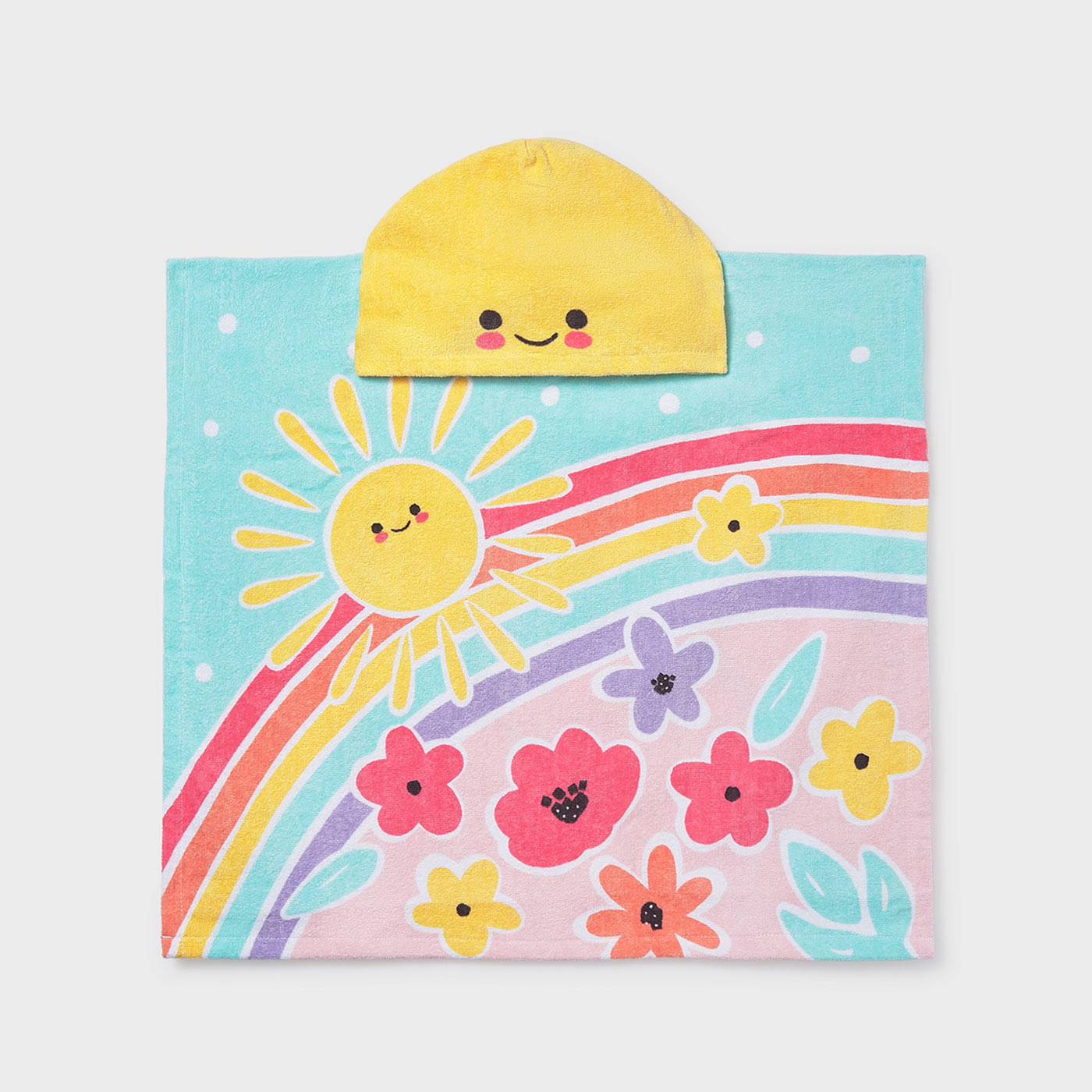 Το παιχνιδιάρικο σχέδιο με ουράνιο τόξο, λουλούδια και χαμογελαστό ήλιο, σε αποχρώσεις ροζ και πράσινου, δημιουργεί μια ευχάριστη εμπειρία για το μωρό, ενώ η ενσωματωμένη κουκούλα βοηθά στο γρήγορο στέγνωμα του κεφαλιού και προστατεύει από το κρύο. Συνοδεύεται από όμορφη συσκευασία Mayoral, καθιστώντας την ιδανική και ως δώρο.