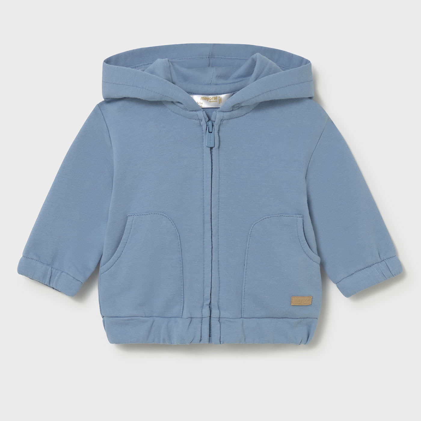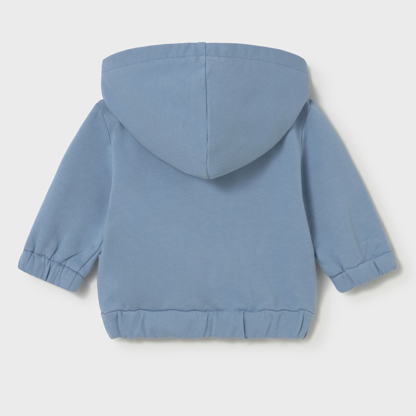 Η βρεφική ζακέτα αχνούδιαστη για αγόρια της Mayoral σε γλυκιά σιέλ απόχρωση είναι ιδανική για τις δροσερές ώρες της ημέρας, προσφέροντας ζεστασιά, άνεση και κομψό παιδικό στυλ. Κατασκευασμένη από απαλό, αχνούδιαστο ύφασμα, αγκαλιάζει απαλά το βρεφικό δέρμα χωρίς να προκαλεί ερεθισμούς.Διαθέτει κουκούλα για επιπλέον προστασία, πρακτικό φερμουάρ σε όλο το μήκος για εύκολη εφαρμογή και τσέπες μπροστά. Τα ελαστικά τελειώματα στα μανίκια και στο κάτω μέρος εξασφαλίζουν σταθερή και άνετη εφαρμογή, καθιστώντας τη ζακέτα ιδανική για καθημερινή χρήση, βόλτες και μεταβατικές εποχές.
