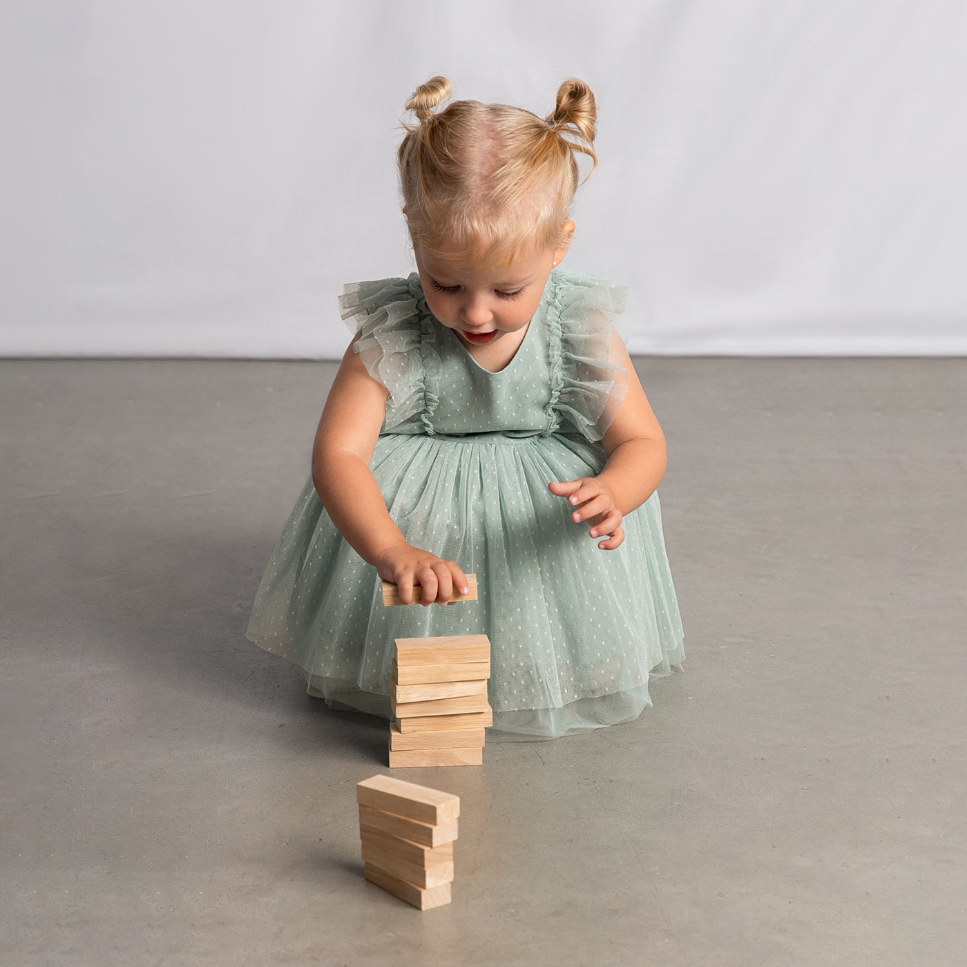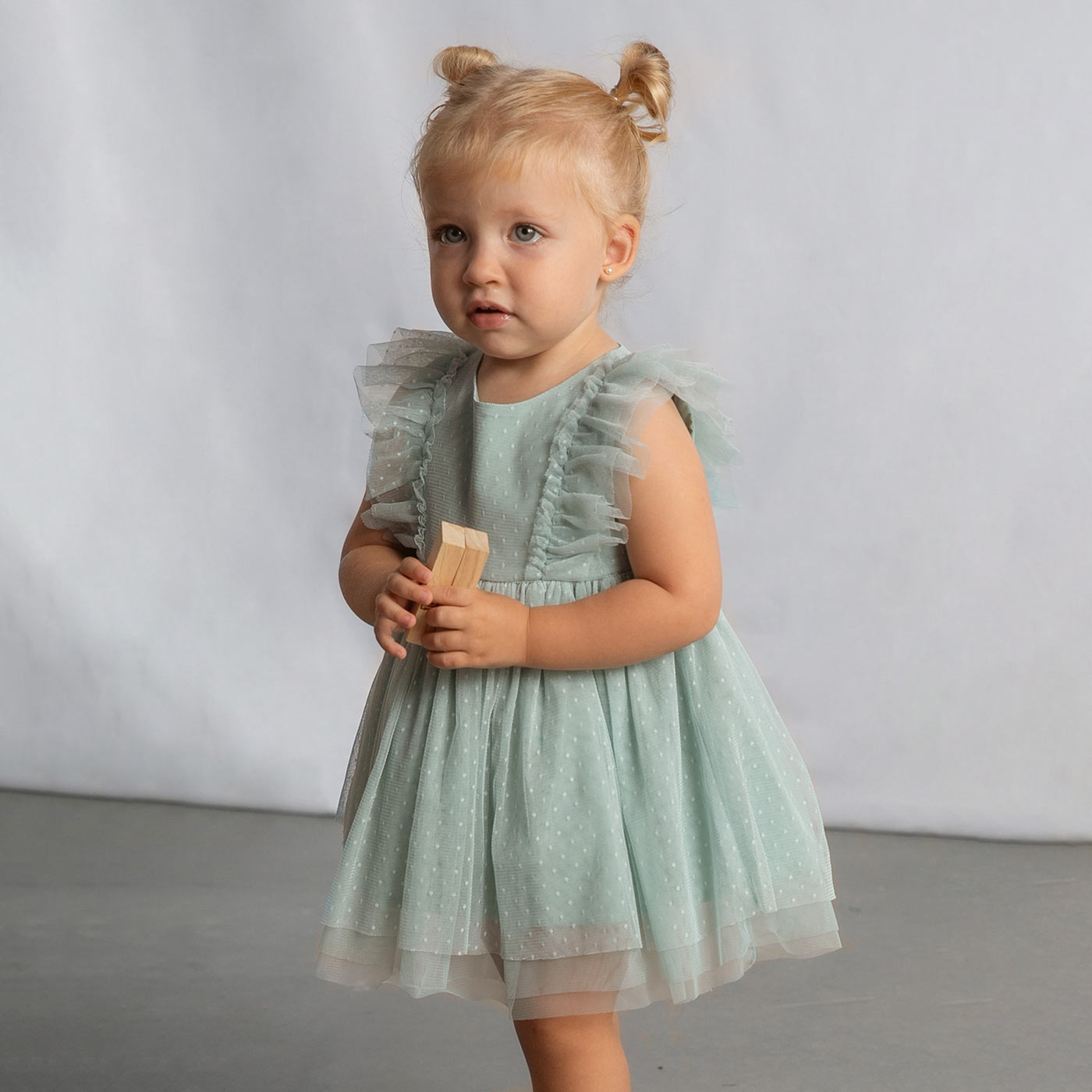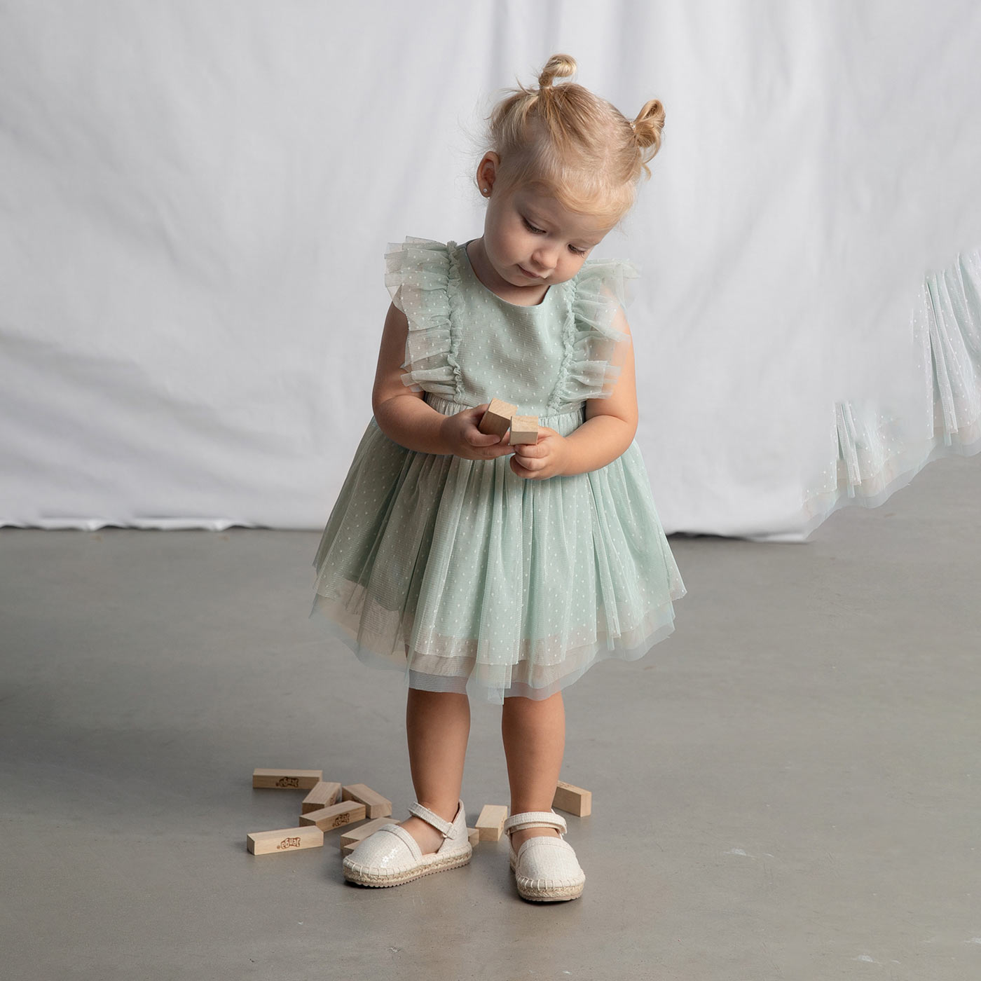 Το βρεφικό φόρεμα Mayoral σε κομψή φυστικί απόχρωση είναι μια υπέροχη επιλογή για ιδιαίτερες στιγμές που απαιτούν στυλ και τρυφερότητα. Με αέρινο σχεδιασμό και προσεγμένες λεπτομέρειες, χαρίζει ρομαντική εμφάνιση χωρίς να στερείται άνεσης.Το φόρεμα είναι κατασκευασμένο από απαλό τούλι με διακριτικό πουά, με εσωτερική βαμβακερή φόδρα για άνετη εφαρμογή και προστασία της ευαίσθητης βρεφικής επιδερμίδας. Τα βολάν στους ώμους προσθέτουν κομψότητα, ενώ η ασορτί κορδέλα μαλλιών συμπληρώνει τέλεια το σύνολο. Διαθέτει κλείσιμο στο πίσω μέρος για εύκολο ντύσιμο.