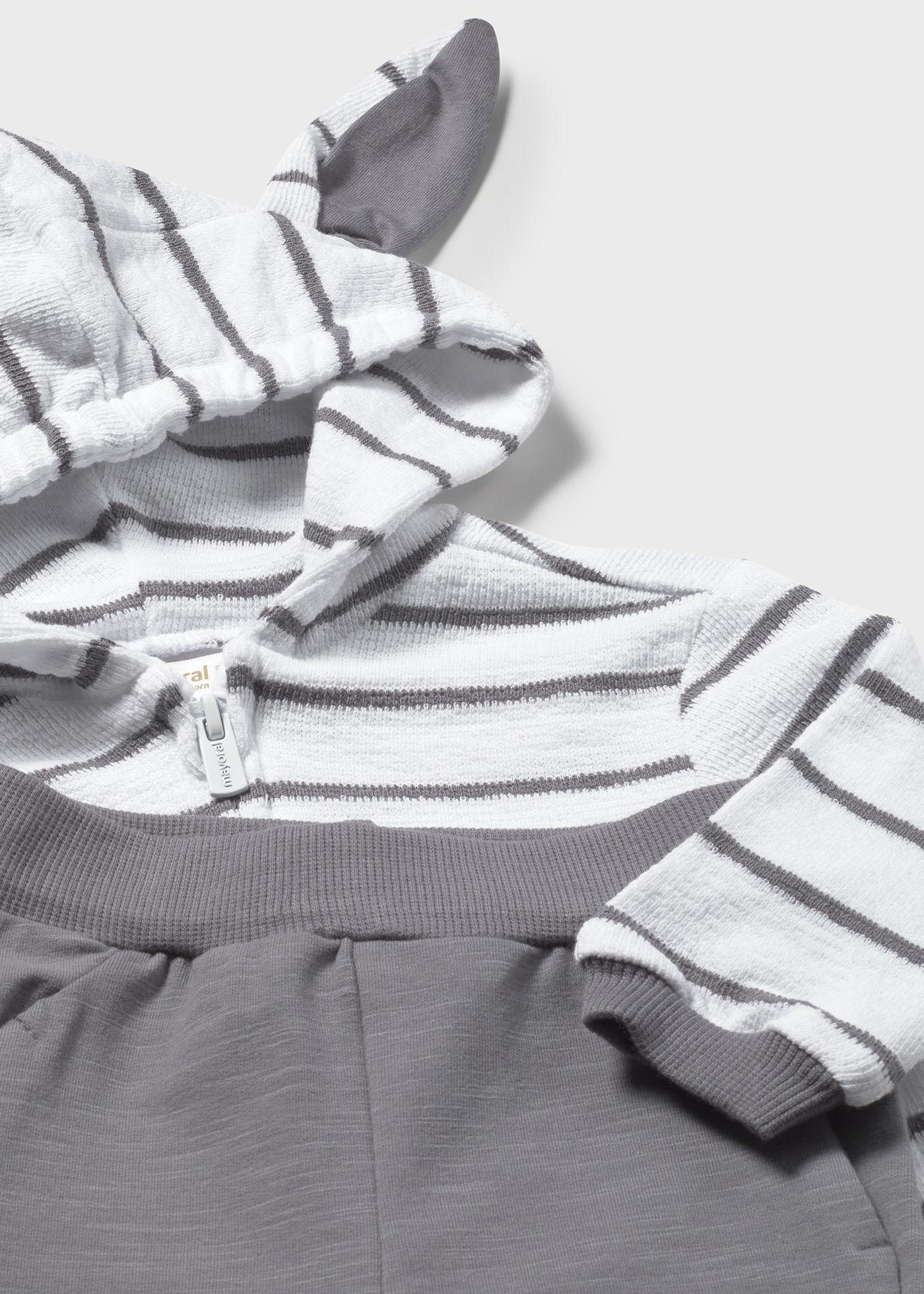 Το βρεφικό σετ φόρμας Mayoral 3 τεμαχίων για αγόρια είναι μια ολοκληρωμένη και κομψή πρόταση για άνετες και στιλάτες εμφανίσεις από τις πρώτες μέρες. Το σετ περιλαμβάνει κοντομάνικο μπλουζάκι, ζακέτα με κουκούλα και παντελόνι φόρμας, προσφέροντας ευελιξία και πρακτικότητα για κάθε στιγμή της ημέρας.