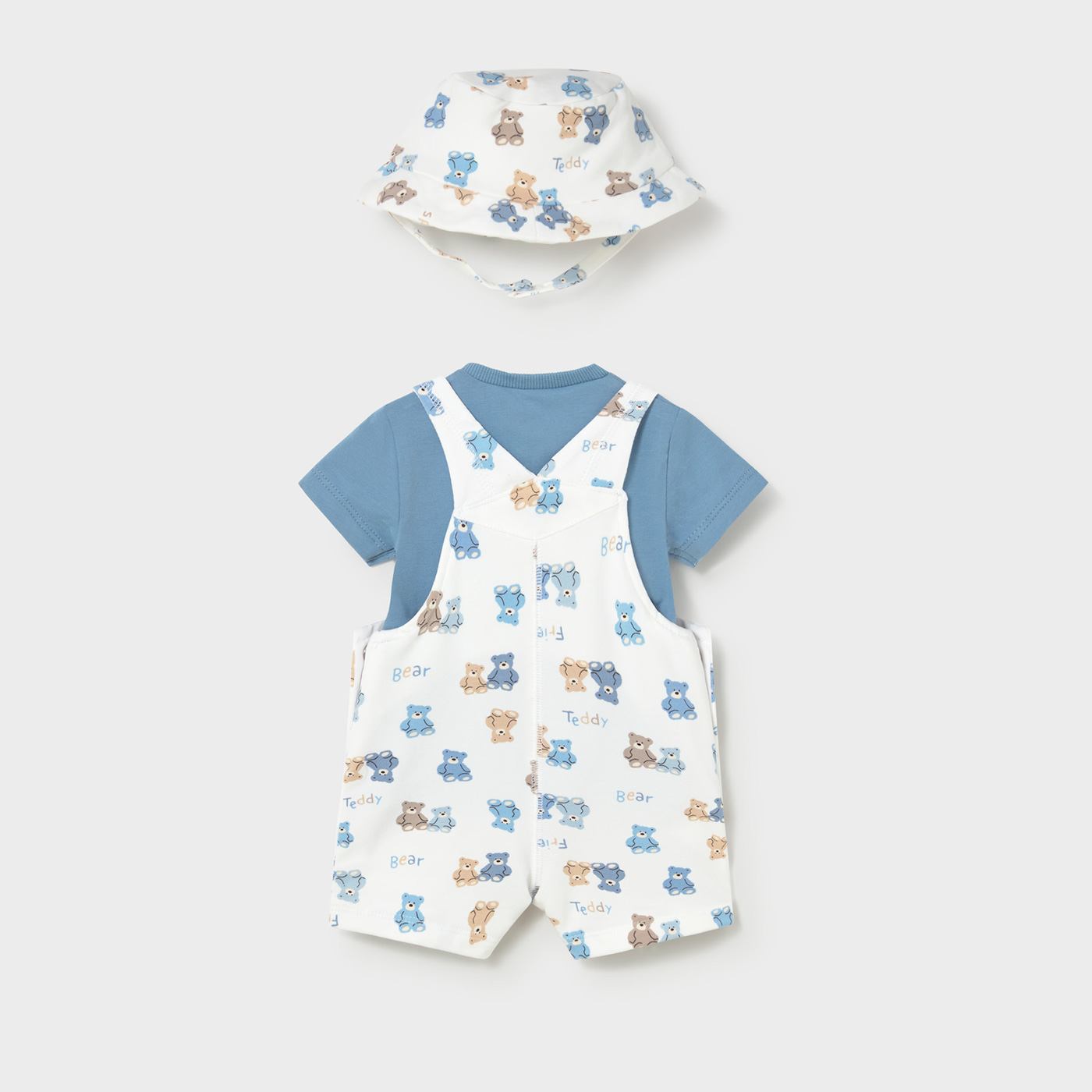 Κομψό και άνετο βρεφικό σετ Mayoral 3 τεμαχίων για αγόρια, ιδανικό για τις καθημερινές αλλά και τις πιο ιδιαίτερες εμφανίσεις του μωρού σας. Το σετ περιλαμβάνει κοντομάνικο μπλουζάκι με παιχνιδιάρικο print, μπλε σαλοπέτα και ασορτί καπέλο, δημιουργώντας ένα ολοκληρωμένο και πρακτικό outfit.