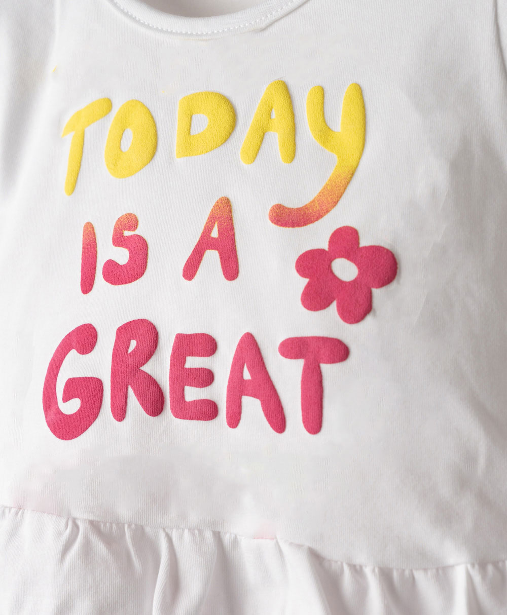 Η απαλή σύνθεση του υφάσματος είναι ιδανική για το ευαίσθητο βρεφικό δέρμα, ενώ η άνετη γραμμή εξασφαλίζει ελευθερία κινήσεων όλη μέρα. Το χαρούμενο design και ο συνδυασμός χρωμάτων δημιουργούν ένα σύνολο που φοριέται εύκολα από το πρωί έως το βράδυ.