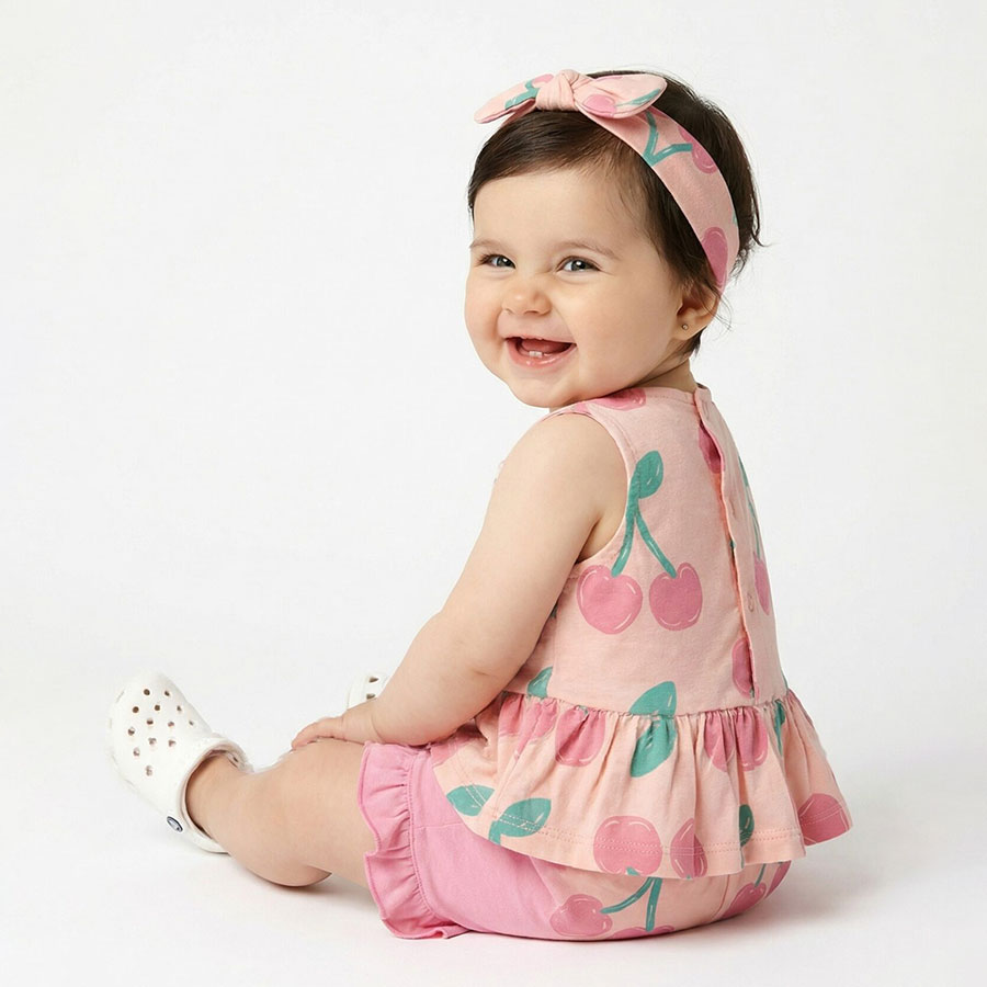 Κατασκευασμένο από απαλό και φιλικό προς το βρεφικό δέρμα ύφασμα, προσφέρει άνεση και ελευθερία κινήσεων όλη μέρα. Το χαρούμενο σχέδιο και τα προσεγμένα details το καθιστούν ιδανικό για κάθε περίσταση από καθημερινές βόλτες μέχρι πιο ιδιαίτερες στιγμές.