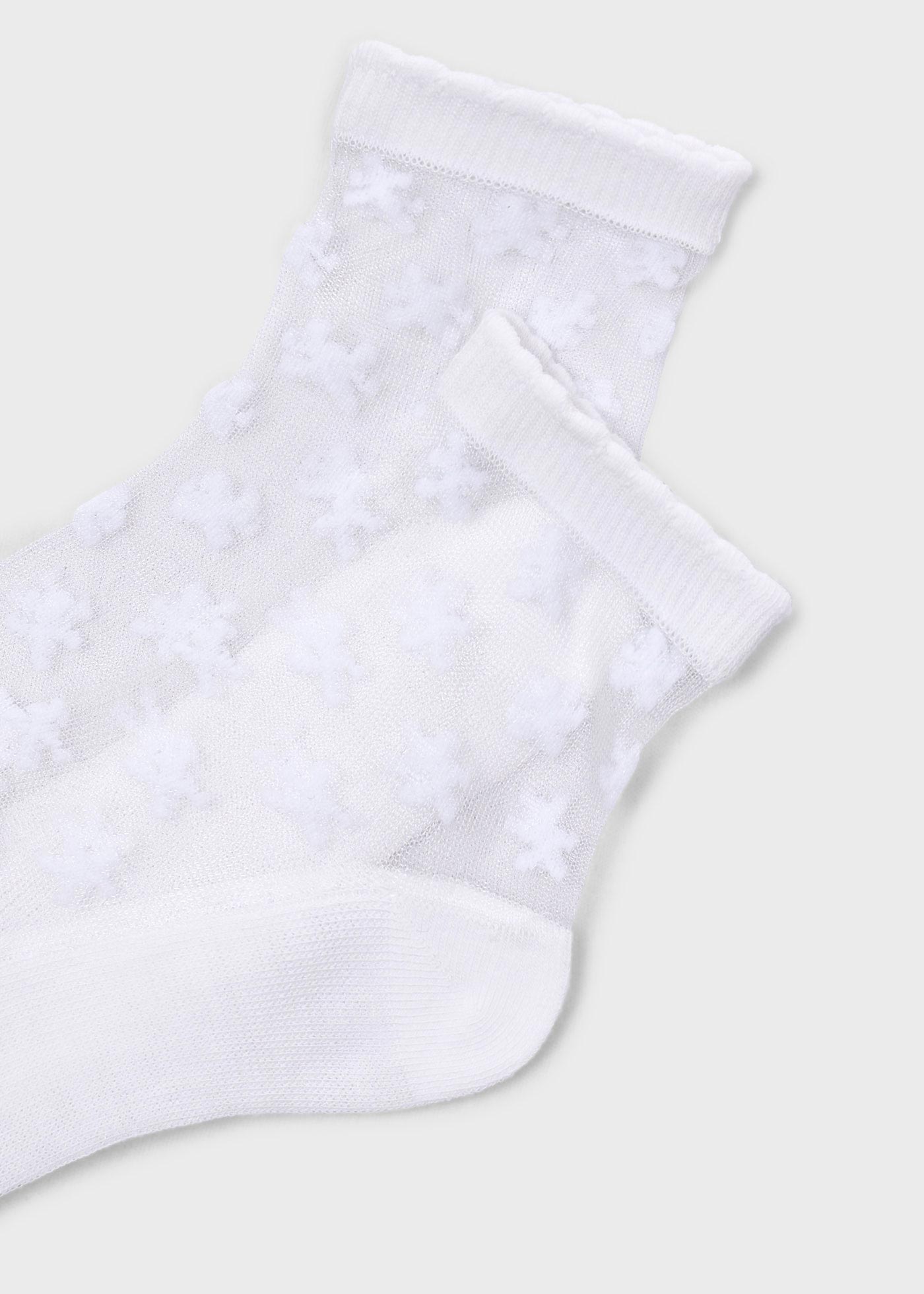 Οι παιδικές κάλτσες Mayoral σε κομψή λευκή απόχρωση αποτελούν μια διαχρονική και φινετσάτη επιλογή που συμπληρώνει άψογα κάθε κοριτσίστικο outfit. Διαθέτουν ημιδιάφανο ύφασμα με διακριτικό ανάγλυφο σχέδιο, προσφέροντας ρομαντική αισθητική και κομψότητα.Η απαλή πλέξη εξασφαλίζει άνετη εφαρμογή χωρίς να πιέζει, ενώ το ενισχυμένο τελείωμα στο πέλμα προσφέρει σταθερότητα και αντοχή στη χρήση. Είναι ιδανικές τόσο για καθημερινές εμφανίσεις όσο και για πιο επίσημες περιστάσεις.Συνδυάζονται υπέροχα με φορέματα, φούστες, σετ βάπτισης ή γιορτινά σύνολα, καθιστώντας τις τέλεια επιλογή για βαπτίσεις, γάμους, σχολικές γιορτές και ιδιαίτερες στιγμές.