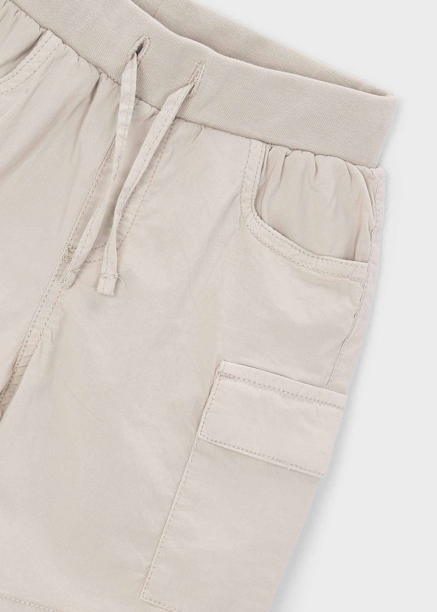 Η παιδική cargo βερμούδα Mayoral σε μπεζ απόχρωση είναι η ιδανική επιλογή για άνετες, δροσερές και πρακτικές καλοκαιρινές εμφανίσεις. Κατασκευασμένη από ελαφρύ και ανθεκτικό βαμβακερό ύφασμα, προσφέρει άνεση και ελευθερία κινήσεων, ιδανική για παιχνίδι, βόλτες και καθημερινές δραστηριότητες.Η ελαστική μέση με κορδόνι εξασφαλίζει τέλεια εφαρμογή χωρίς πίεση, ενώ οι χαρακτηριστικές cargo τσέπες στο πλάι προσθέτουν λειτουργικότητα και μοντέρνο στυλ. Το μπεζ χρώμα χαρίζει φρεσκάδα και συνδυάζεται εύκολα με t-shirt, polos ή πουκάμισα.