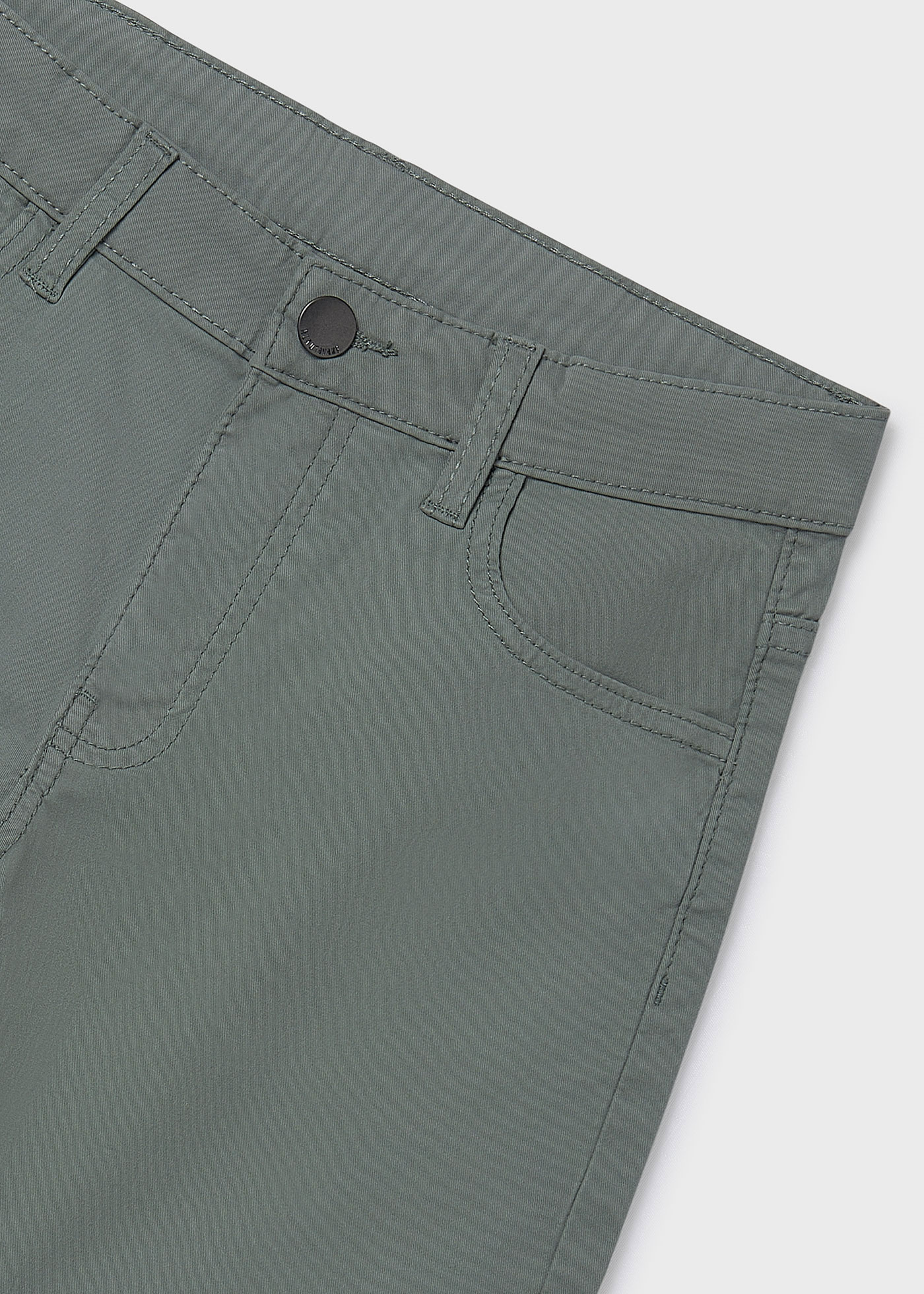Η παιδική βερμούδα Mayoral για αγόρια σε χακί χρώμα αποτελεί διαχρονική και κομψή επιλογή για τις καλοκαιρινές εμφανίσεις. Κατασκευασμένη από ποιοτικό βαμβακερό ύφασμα με ελαστικότητα, προσφέρει άνετη εφαρμογή και ελευθερία κινήσεων, ιδανική για όλη την ημέρα.Διαθέτει κλασικό σχέδιο 5 τσεπών, κλείσιμο με κουμπί και φερμουάρ και κανονική γραμμή που εφαρμόζει άψογα στο σώμα. Το minimal design της επιτρέπει εύκολους συνδυασμούς τόσο με t-shirts όσο και με πουκάμισα ή polo μπλούζες, καθιστώντας τη ιδανική επιλογή για καθημερινή χρήση αλλά και πιο προσεγμένες εμφανίσεις.Μια βερμούδα που συνδυάζει άνεση, ποιότητα και κομψότητα, αποτελώντας βασικό κομμάτι της καλοκαιρινής παιδικής γκαρνταρόμπας.