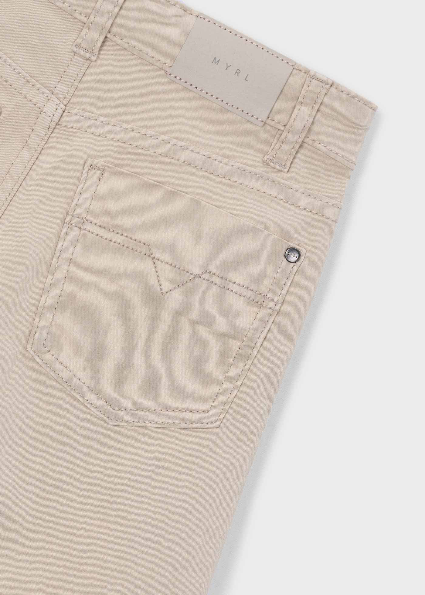 Η παιδική καπαρτινέ βερμούδα Mayoral σε μπεζ χρώμα αποτελεί μια κομψή και διαχρονική επιλογή για τις καλοκαιρινές εμφανίσεις των αγοριών. Κατασκευασμένη από μαλακό και ανθεκτικό καπαρτινέ ύφασμα, προσφέρει άνεση και ελευθερία κινήσεων, διατηρώντας παράλληλα μια προσεγμένη, καθαρή αισθητική.Ο κλασικός σχεδιασμός με κουμπί και φερμουάρ, οι θηλιές για ζώνη και οι μπροστινές και πίσω τσέπες καθιστούν τη βερμούδα ιδανική τόσο για καθημερινές όσο και για πιο επίσημες περιστάσεις. Το μπεζ χρώμα χαρίζει φρεσκάδα και συνδυάζεται εύκολα με πουκάμισα, polos ή t-shirts.