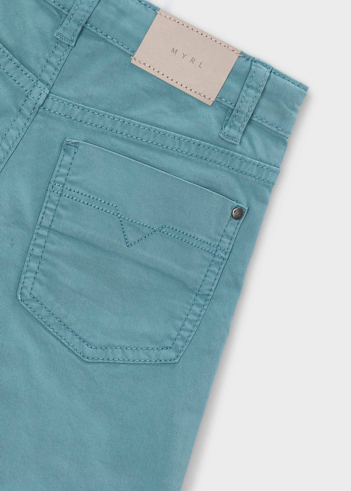 Η παιδική καπαρτινέ βερμούδα Mayoral σε πετρόλ χρώμα αποτελεί μια κομψή και διαχρονική επιλογή για τις καλοκαιρινές εμφανίσεις των αγοριών. Κατασκευασμένη από μαλακό και ανθεκτικό καπαρτινέ ύφασμα, προσφέρει άνεση και ελευθερία κινήσεων, διατηρώντας παράλληλα μια προσεγμένη, καθαρή αισθητική.Ο κλασικός σχεδιασμός με κουμπί και φερμουάρ, οι θηλιές για ζώνη και οι μπροστινές και πίσω τσέπες καθιστούν τη βερμούδα ιδανική τόσο για καθημερινές όσο και για πιο επίσημες περιστάσεις. Το πετρόλ χρώμα χαρίζει φρεσκάδα και συνδυάζεται εύκολα με πουκάμισα, polos ή t-shirts.