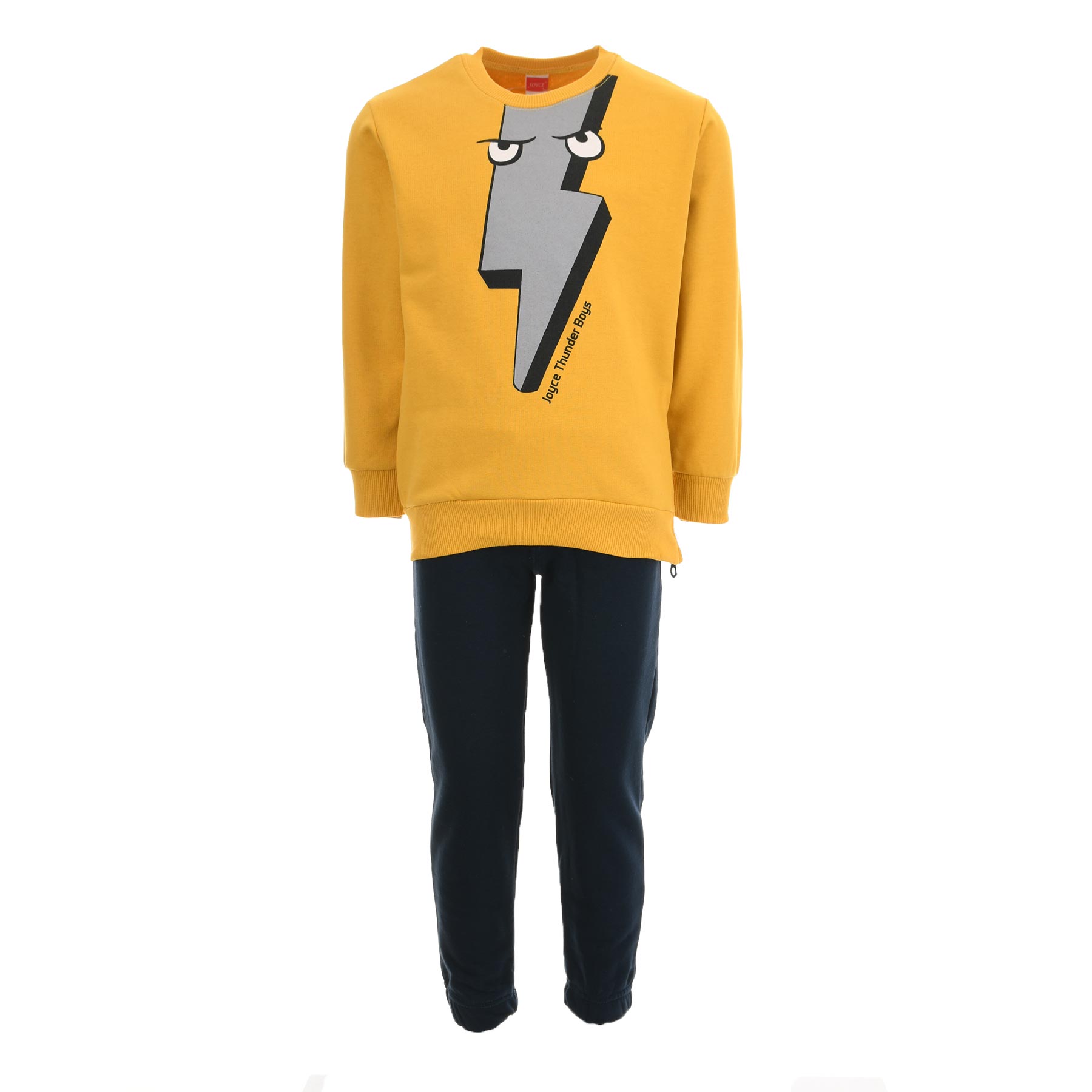 Δώστε χρώμα και στυλ στις καθημερινές εμφανίσεις με αυτή την παιδική φόρμα για αγόρια Joyce! Το σετ αποτελείται από μπλούζα αχνούδιαστη σε έντονο κίτρινο χρώμα και παντελόνι φόρμας σε μαρέν απόχρωση, δημιουργώντας έναν μοντέρνο και παιχνιδιάρικο συνδυασμό.