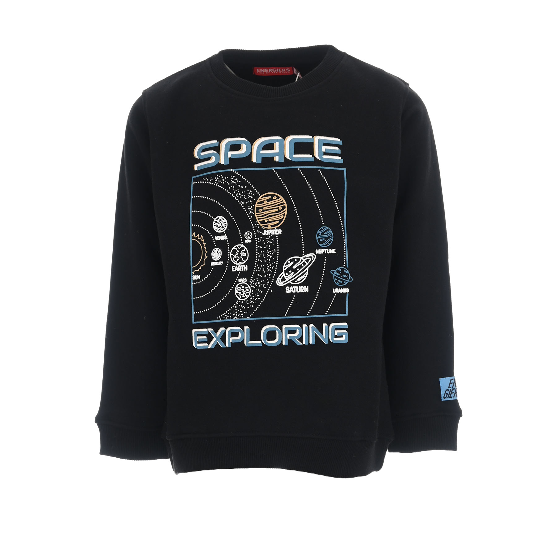 Ανακαλύψτε το διάστημα με στυλ με την παιδική φόρμα φούτερ "Space" για αγόρια Energiers. Το σετ περιλαμβάνει μαύρη μπλούζα με εντυπωσιακό print ηλιακού συστήματος και παντελόνι φόρμας σε πετρόλ χρώμα, ιδανικό για καθημερινές δραστηριότητες και παιχνίδι.