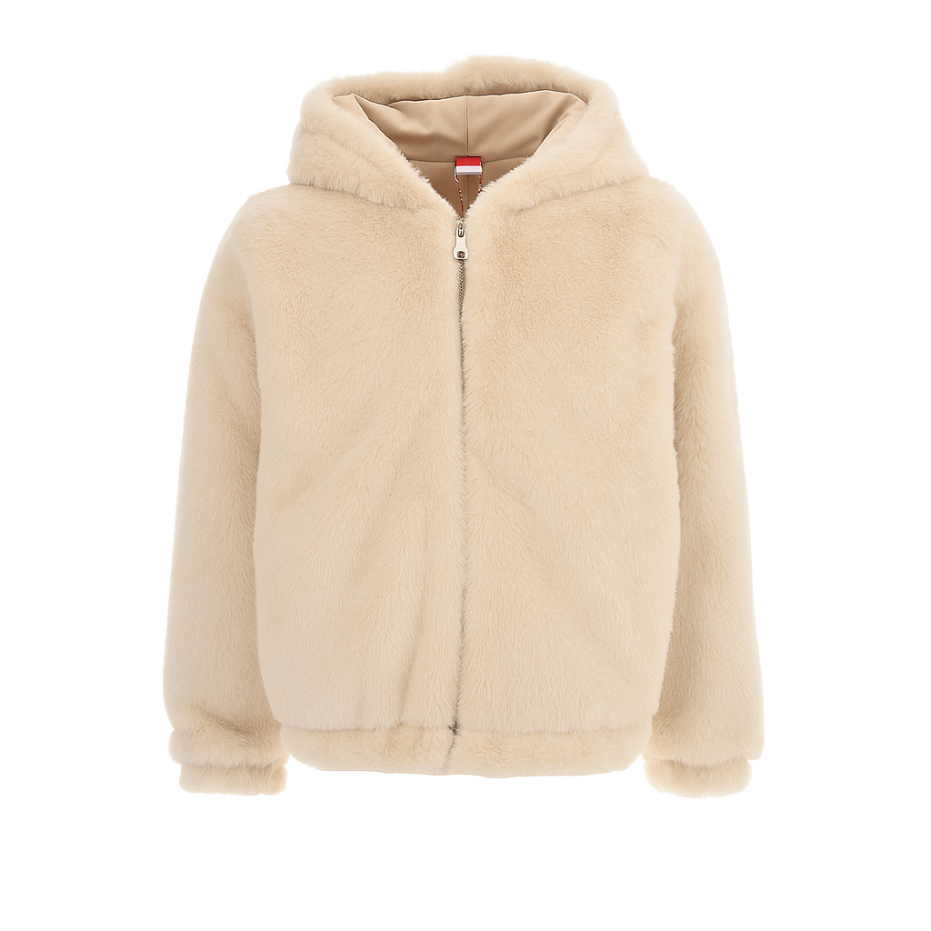 Η γούνα διαθέτει κουκούλα, φερμουάρ μπροστά και πλαϊνές τσέπες, εξασφαλίζοντας πρακτικότητα και ευκολία στη χρήση. Το υπέροχα μαλακό ύφασμα χαρίζει αίσθηση πολυτέλειας, ενώ η ουδέτερη εκρού απόχρωση ταιριάζει εύκολα με κάθε outfit από casual φόρμες μέχρι πιο κομψά φορέματα.