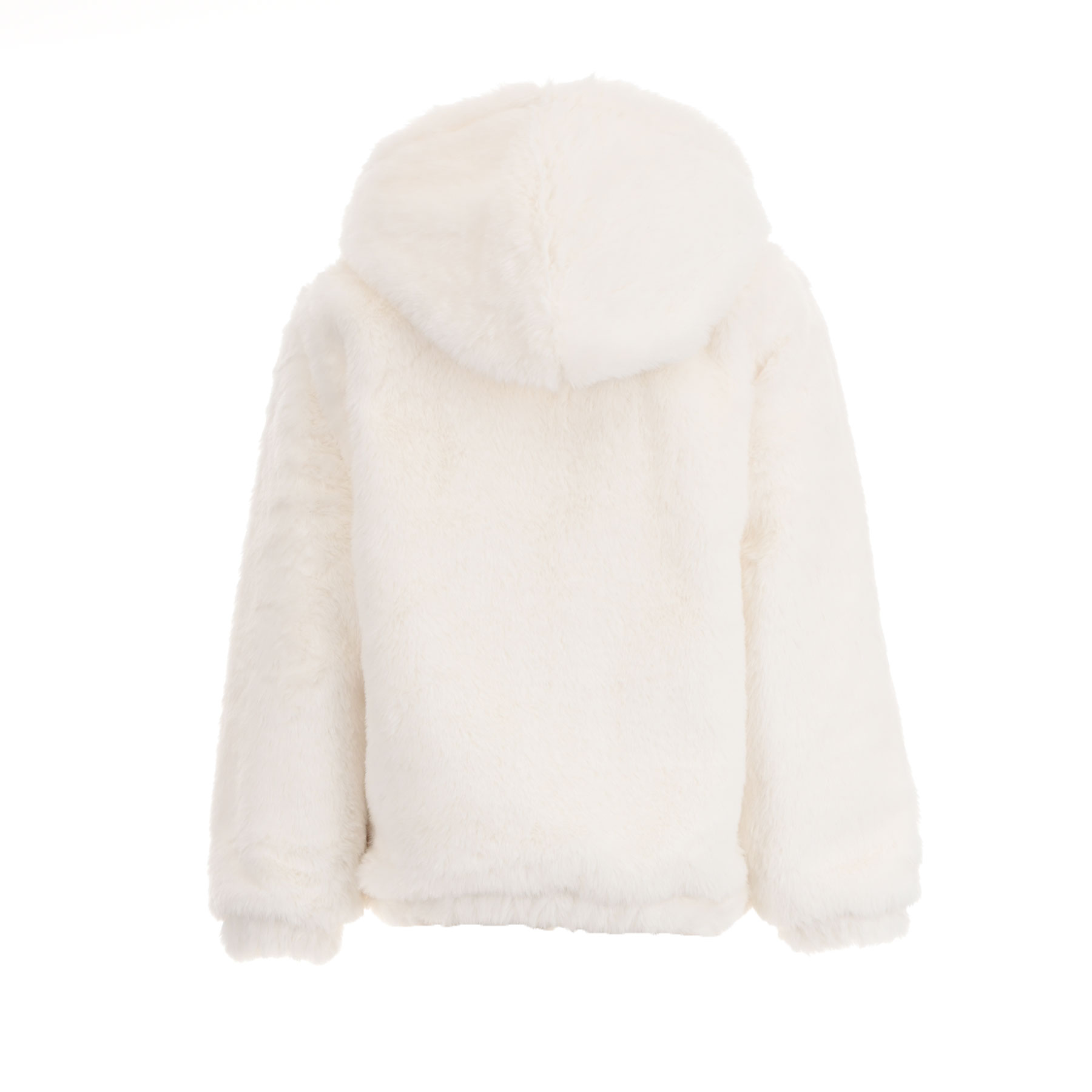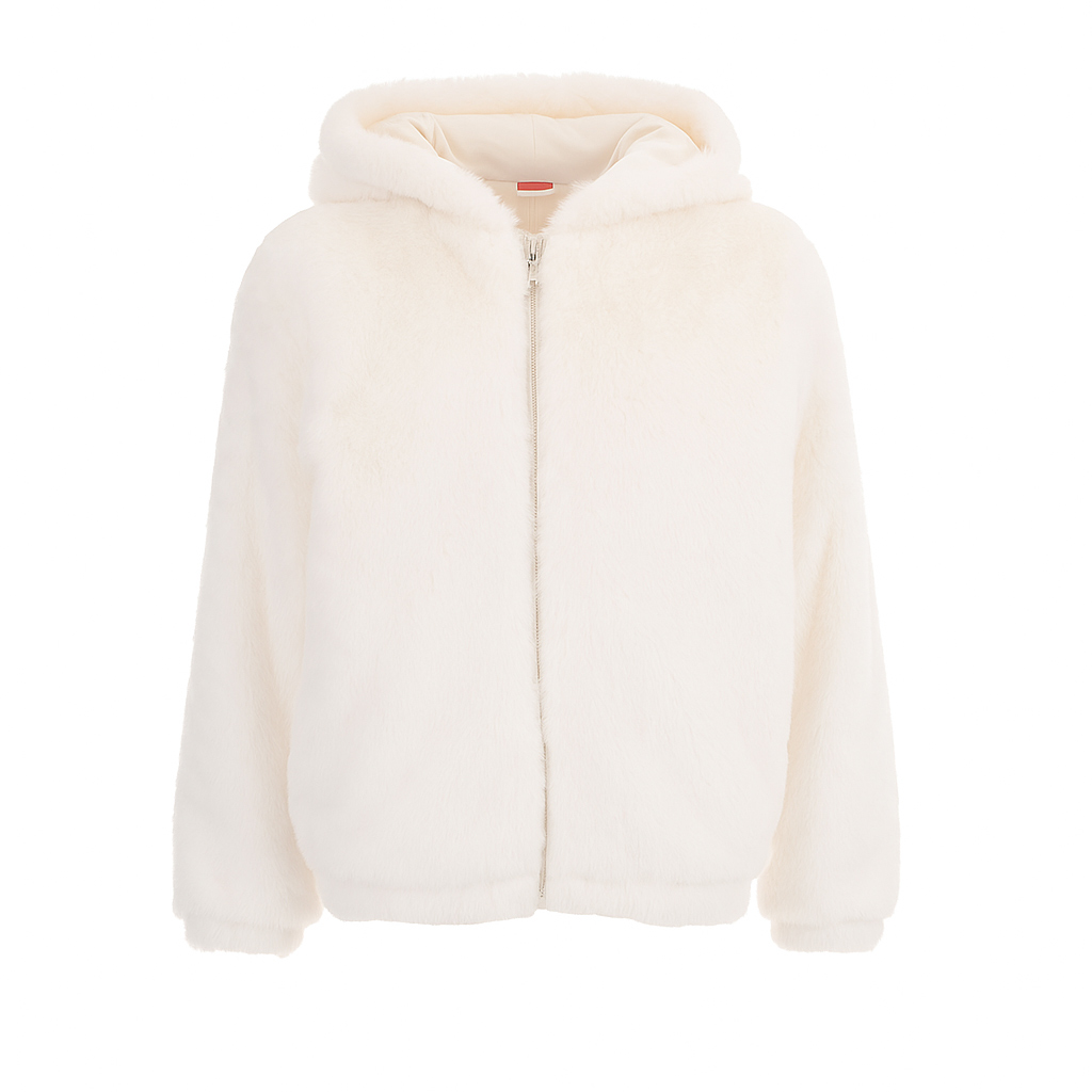 Η γούνα διαθέτει κουκούλα, φερμουάρ μπροστά και πλαϊνές τσέπες, εξασφαλίζοντας πρακτικότητα και ευκολία στη χρήση. Το υπέροχα μαλακό ύφασμα χαρίζει αίσθηση πολυτέλειας, ενώ η ουδέτερη λευκή απόχρωση ταιριάζει εύκολα με κάθε outfit από casual φόρμες μέχρι πιο κομψά φορέματα.