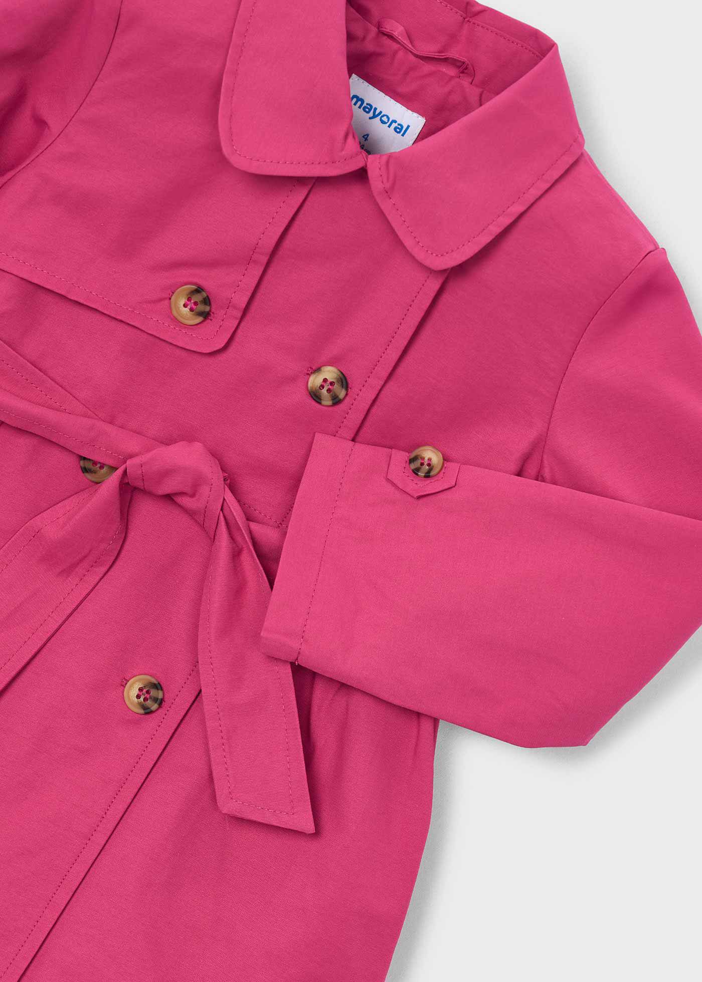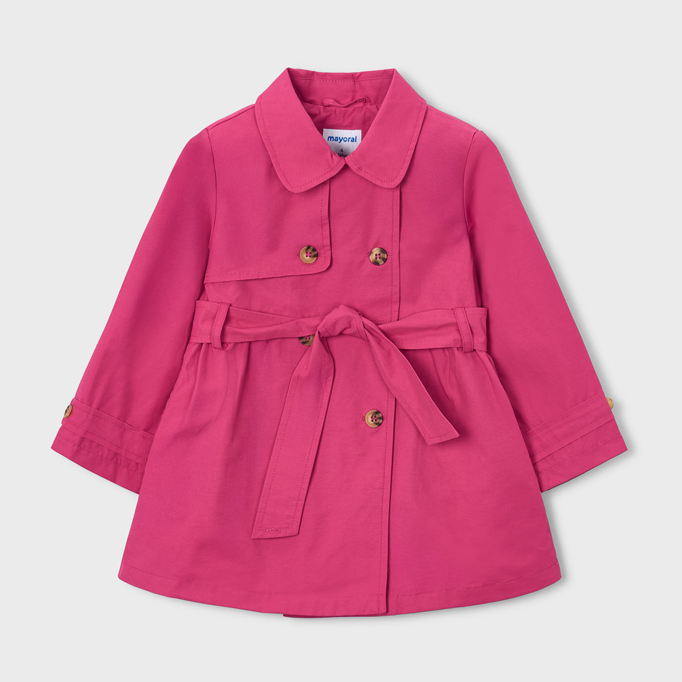 Η παιδική καπαρντίνα Mayoral σε κομψή φούξια απόχρωση αποτελεί την ιδανική επιλογή για τις μεταβατικές εποχές, συνδυάζοντας διαχρονικό στυλ με άνεση και πρακτικότητα. Με κλασική γραμμή trench coat, διπλό κούμπωμα και ζώνη στη μέση, χαρίζει κομψή εφαρμογή και προστασία από τον αέρα και τη δροσιά της άνοιξης ή του φθινοπώρου.Κατασκευασμένη από ποιοτικό και απαλό ύφασμα, είναι ευχάριστη στην αφή και κατάλληλη για καθημερινή χρήση ή πιο επίσημες εμφανίσεις. Ο γιακάς, οι διακοσμητικές λεπτομέρειες στα μανίκια και τα κουμπιά σε φυσικούς τόνους προσθέτουν μία εκλεπτυσμένη αισθητική που ταιριάζει απόλυτα με φορέματα, σετ ή casual outfits.
