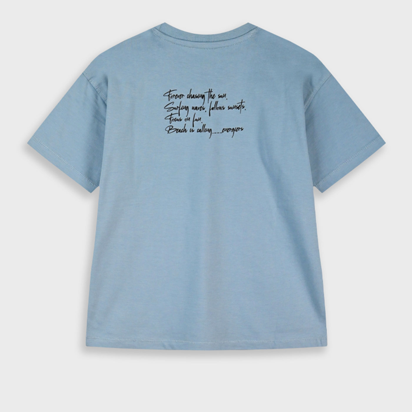 Δώστε καλοκαιρινή διάθεση στις εμφανίσεις του μικρού σας με την παιδική μπλούζα Energiers σε σιέλ απόχρωση. Ένα άνετο και μοντέρνο t-shirt που ξεχωρίζει για το minimal design και τη διακριτική του στάμπα στο στήθος.Η μπλούζα διαθέτει κοντό μανίκι και στρογγυλή λαιμόκοψη, εξασφαλίζοντας άνετη εφαρμογή και ελευθερία κινήσεων. Το μικρό τύπωμα μπροστά με καλοκαιρινό μήνυμα Out of Sunrise Time for Surf χαρίζει surf & relaxed χαρακτήρα, ιδανικό για casual εμφανίσεις.Το σιέλ χρώμα αποπνέει φρεσκάδα και συνδυάζεται εύκολα με βερμούδες, τζιν ή cargo παντελόνια, δημιουργώντας ολοκληρωμένα καλοκαιρινά σύνολα.Κατασκευασμένη από μαλακό βαμβακερό ύφασμα, είναι ευχάριστη στην αφή, ανθεκτική και κατάλληλη για καθημερινή χρήση.