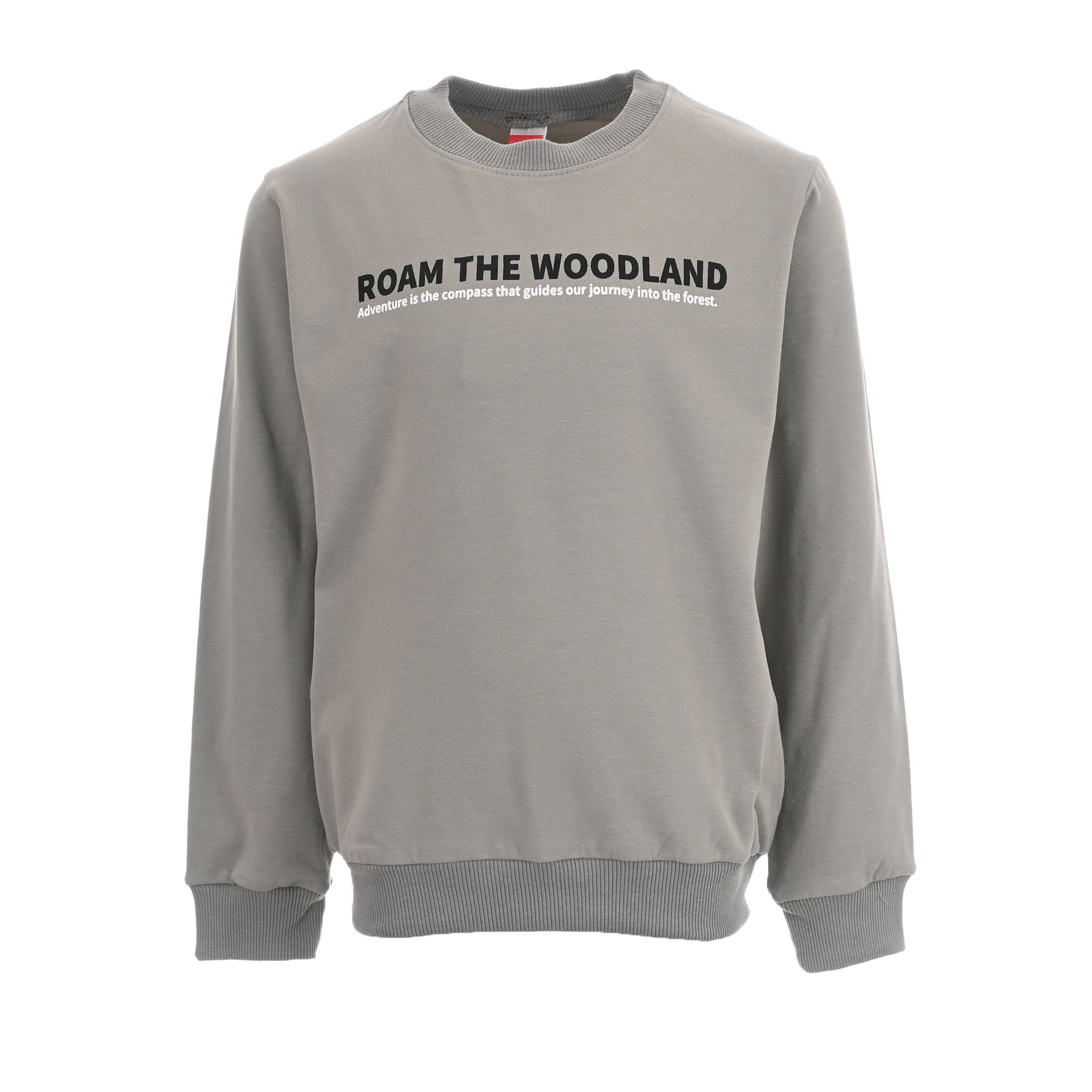 Χαρίστε στυλ και άνεση στις καθημερινές εμφανίσεις του μικρού σας με αυτή τη μοντέρνα παιδική μπλούζα για αγόρι Joyce σε κομψό χρώμα ελεφάντ (γκρι). Με minimal σχέδιο μπροστά και εντυπωσιακή στάμπα "ROAM THE WOODLAND" στο στήθος, αποπνέει περιπέτεια και αυτοπεποίθηση ιδανική για αγόρια που αγαπούν τη φύση και την ελευθερία!