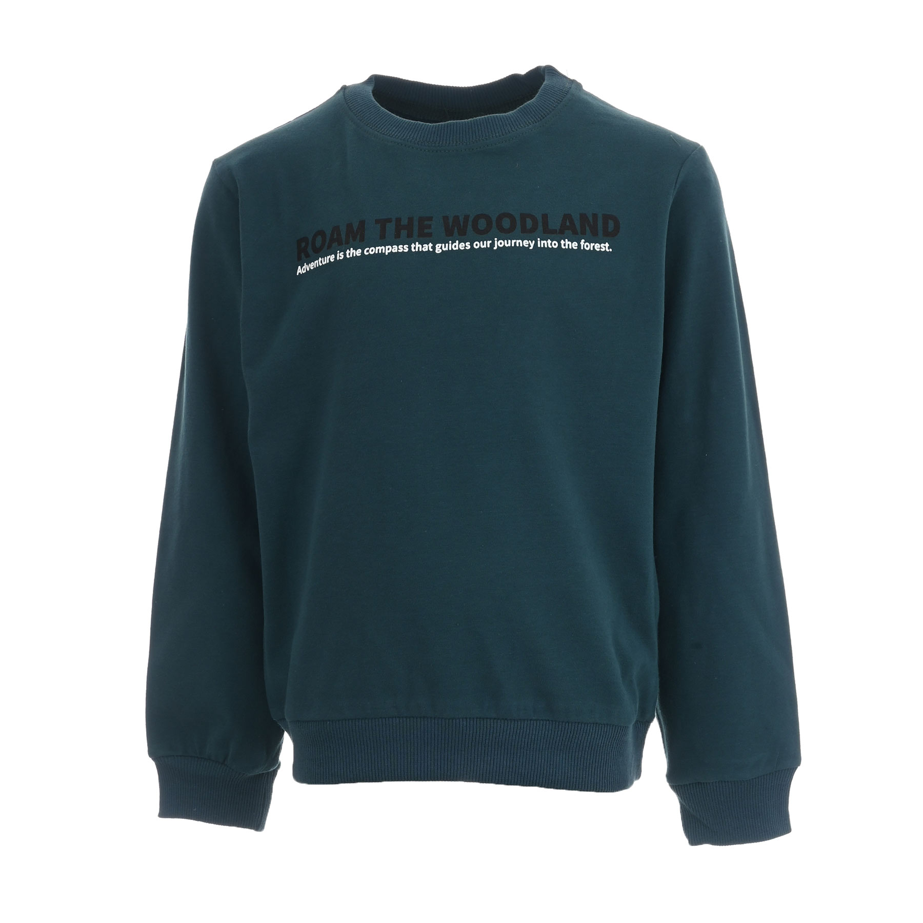 Χαρίστε στυλ και άνεση στις καθημερινές εμφανίσεις του μικρού σας με αυτή τη μοντέρνα παιδική μπλούζα για αγόρι Joyce σε κομψό χρώμα πετρόλ. Με minimal σχέδιο μπροστά και εντυπωσιακή στάμπα "ROAM THE WOODLAND" στο στήθος, αποπνέει περιπέτεια και αυτοπεποίθηση ιδανική για αγόρια που αγαπούν τη φύση και την ελευθερία!
