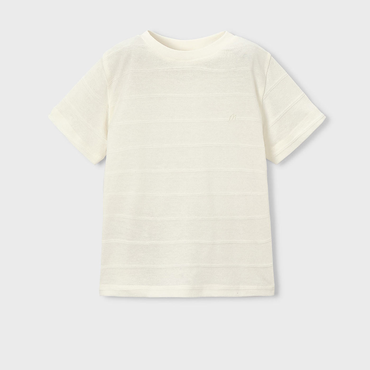 Η παιδική μπλούζα Mayoral για αγόρια σε κομψή κρεμ απόχρωση αποτελεί ιδανική επιλογή για καθημερινές και πιο προσεγμένες εμφανίσεις. Με διακριτική υφή ριγών στο ύφασμα και minimal σχεδιασμό, προσφέρει άνεση και στυλ σε κάθε δραστηριότητα του παιδιού.Κατασκευασμένη από ποιοτικό βαμβακερό ύφασμα, είναι απαλή στην αφή και επιτρέπει στο δέρμα να αναπνέει, καθιστώντας την κατάλληλη για όλες τις ώρες της ημέρας. Το στρογγυλό λαιμόκομμα και το μικρό κεντημένο λογότυπο της Mayoral στο στήθος προσθέτουν μια διακριτική, μοντέρνα πινελιά.