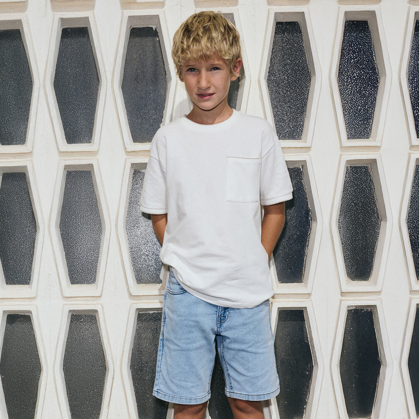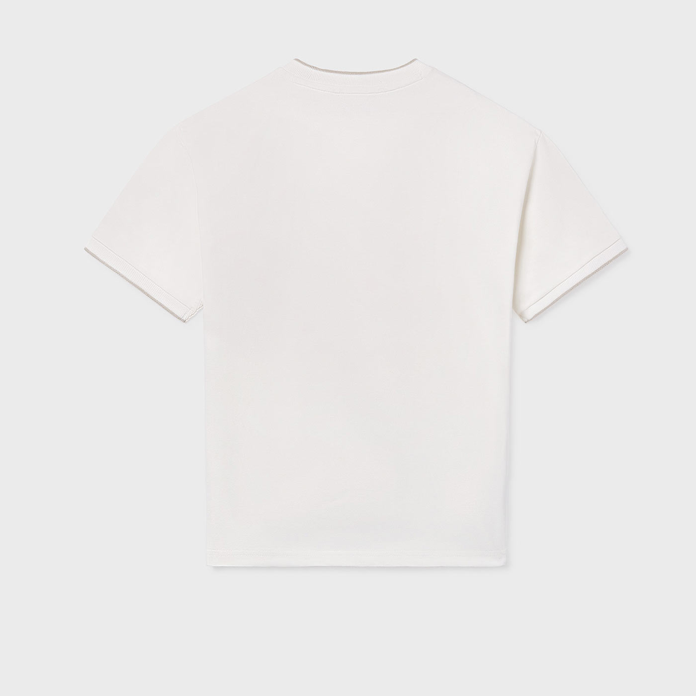 Η παιδική μπλούζα Mayoral για αγόρια σε κρεμ απόχρωση αποτελεί ιδανική επιλογή για καθημερινές αλλά και πιο προσεγμένες εμφανίσεις. Με minimal σχεδιασμό και προσεγμένες λεπτομέρειες, συνδυάζει άνεση, ποιότητα και ευκολία στο styling.Κατασκευασμένη από απαλό και ανθεκτικό βαμβακερό ύφασμα, προσφέρει ευχάριστη αίσθηση στο δέρμα και επιτρέπει στο σώμα να αναπνέει, καθιστώντας τη κατάλληλη για όλες τις εποχές. Διαθέτει στρογγυλή λαιμόκοψη, κοντό μανίκι και λειτουργική τσέπη στο στήθος, που προσθέτει διακριτικό χαρακτήρα στο σύνολο.Η ουδέτερη κρεμ απόχρωση ταιριάζει εύκολα με τζιν, βερμούδες ή chino παντελόνια, δημιουργώντας σύνολα για σχολείο, βόλτα ή οικογενειακές εξόδους.