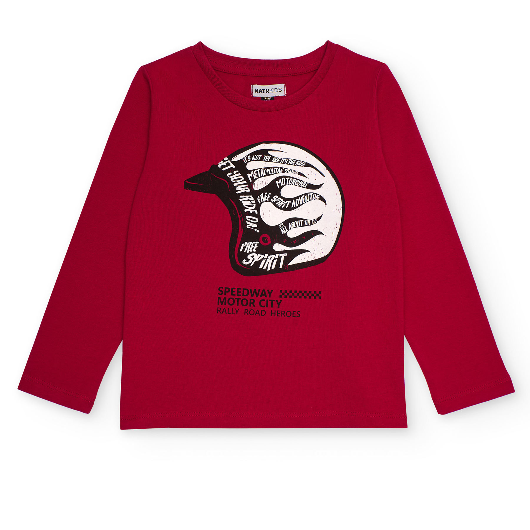 Δώστε στυλ και άνεση στην καθημερινότητα του μικρού σας με αυτή τη μοντέρνα παιδική μπλούζα με μακρύ μανίκι από τη συλλογή Nathkids. Σε δυναμικό κόκκινο χρώμα, διαθέτει εντυπωσιακή στάμπα με κράνος μηχανής και φράσεις που αποπνέουν ελευθερία, περιπέτεια και "free spirit" διάθεση. Κατασκευασμένη από υψηλής ποιότητας βαμβάκι, προσφέρει απαλότητα, διαπνοή και αντοχή για παιχνίδι όλη μέρα.