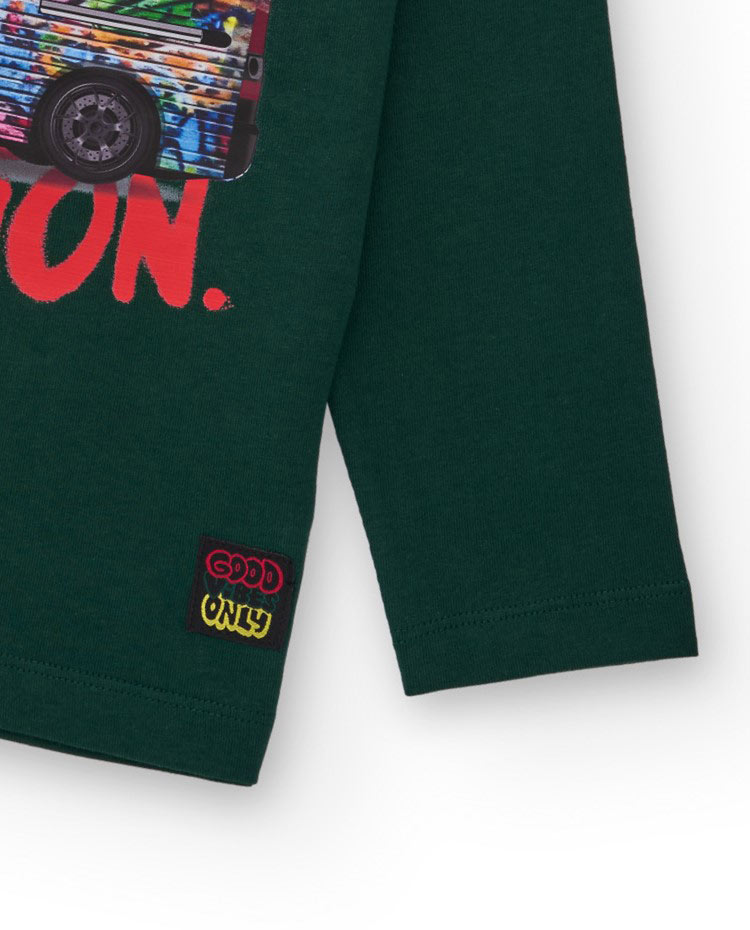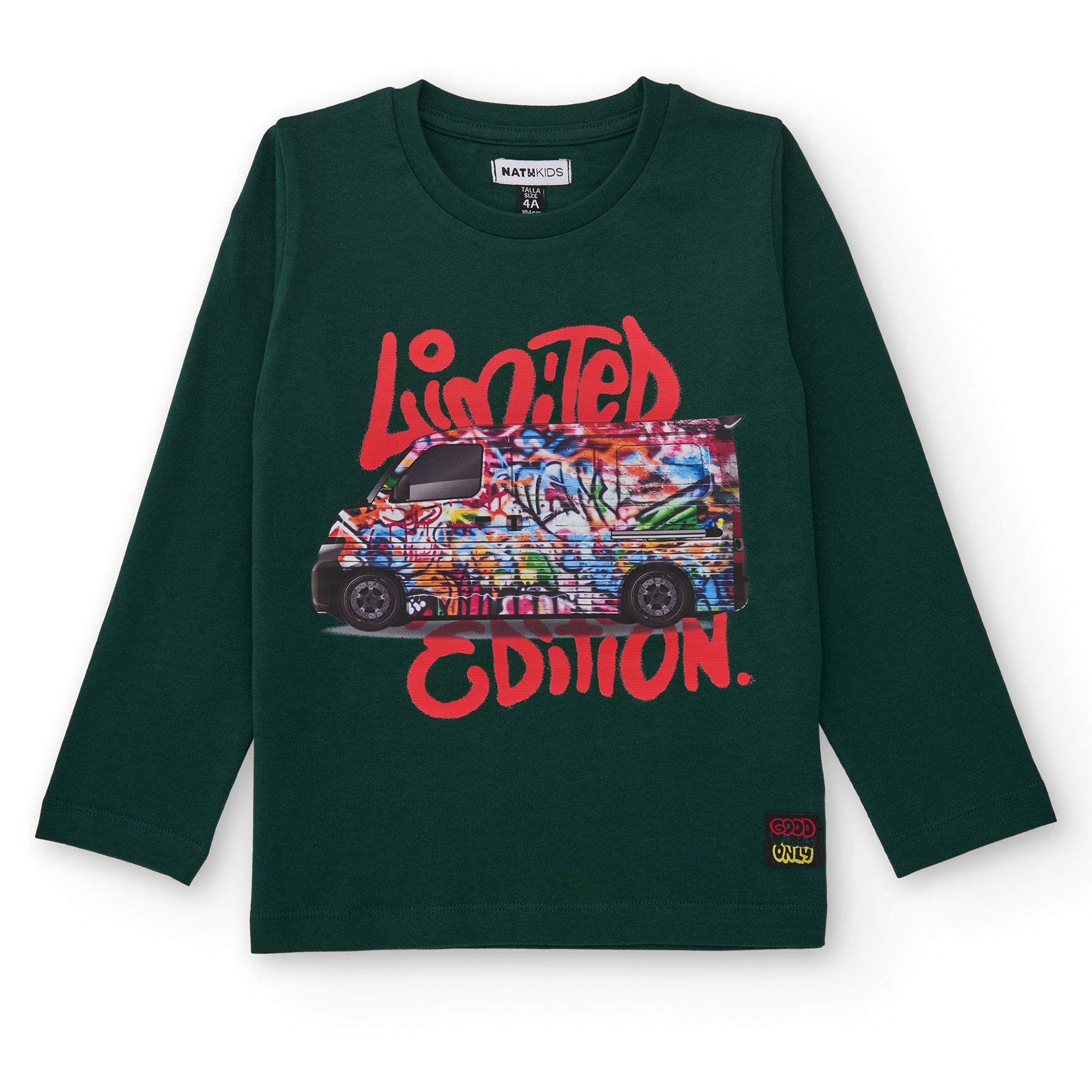 Η παιδική μπλούζα Nathkids σε κυπαρισσί χρώμα ξεχωρίζει με το εντυπωσιακό τύπωμα "Limited Edition" και το πολύχρωμο γραφιστικό σχέδιο με βαν σε street art στυλ. Ιδανική επιλογή για αγόρια που αγαπούν την urban αισθητική και θέλουν να ξεχωρίζουν σε κάθε τους εμφάνιση.