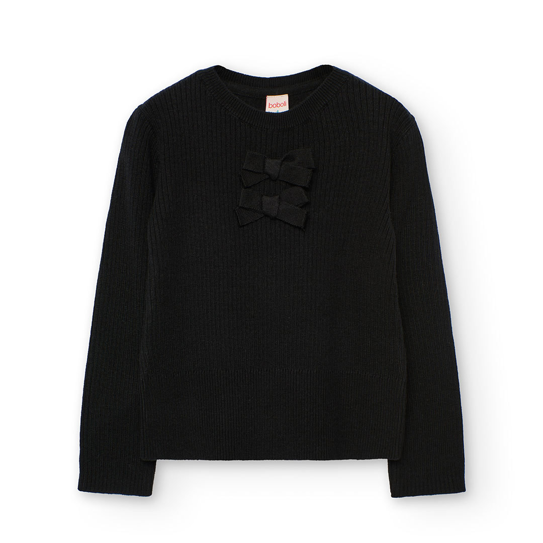Παιδική Πλεκτή Μπλούζα για Κορίτσια Boboli Μαύρη με Διακοσμητικούς Φιόγκους | Κοριτσίστικο Πουλόβερ