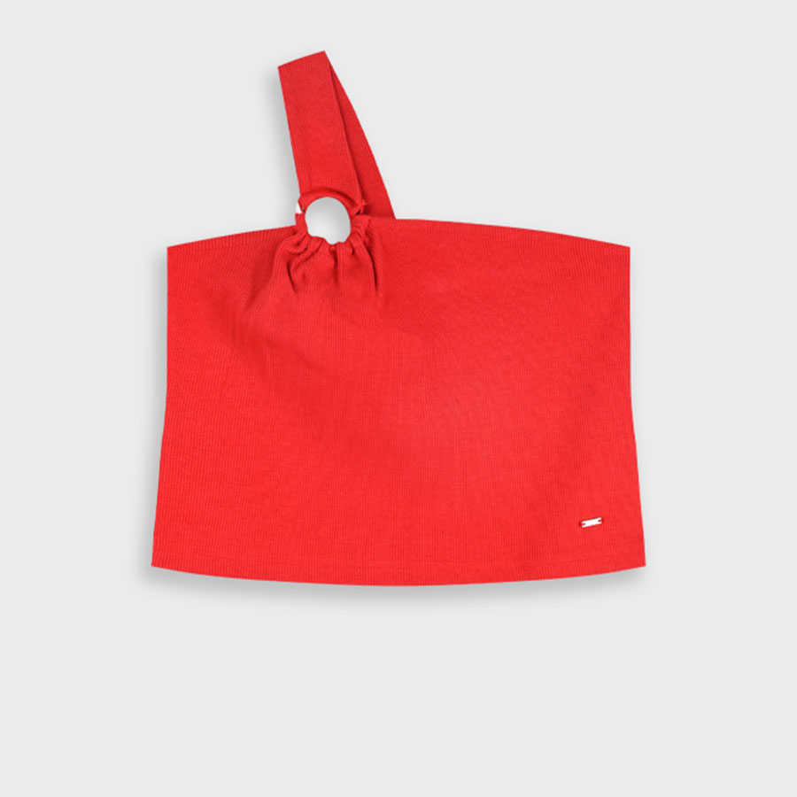 Η παιδική κόκκινη μπλούζα για κορίτσια Energiers είναι ένα εντυπωσιακό κομμάτι που ξεχωρίζει χάρη στο μοντέρνο ασύμμετρο σχέδιο με έναν ώμο. Το ιδιαίτερο δέσιμο με κρίκο δημιουργεί ένα fashion-forward look που θα λατρέψουν τα κορίτσια.