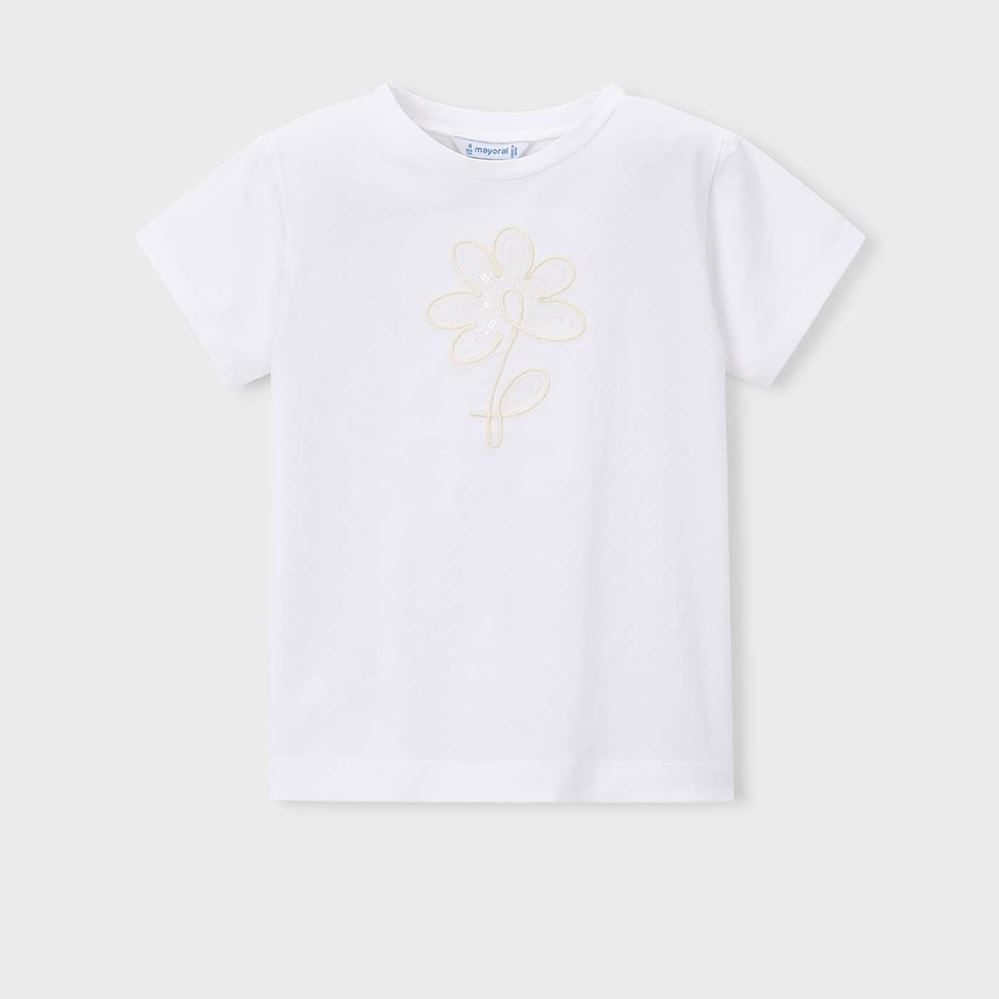 Η παιδική μπλούζα Mayoral σε λευκή απόχρωση αποτελεί μια διαχρονική και κομψή επιλογή για τις καθημερινές αλλά και πιο προσεγμένες εμφανίσεις των κοριτσιών. Ξεχωρίζει για το διακριτικό κεντημένο λουλούδι στο μπροστινό μέρος, το οποίο χαρίζει ρομαντικό χαρακτήρα χωρίς υπερβολές.Κατασκευασμένη από απαλό και ποιοτικό βαμβακερό ύφασμα, προσφέρει άνεση όλη μέρα και είναι ιδανική για σχολείο, βόλτες ή οικογενειακές εξόδους. Η ουδέτερη λευκή απόχρωση συνδυάζεται εύκολα με φούστες, παντελόνια ή σορτς, δημιουργώντας κομψά σύνολα κάθε εποχή.