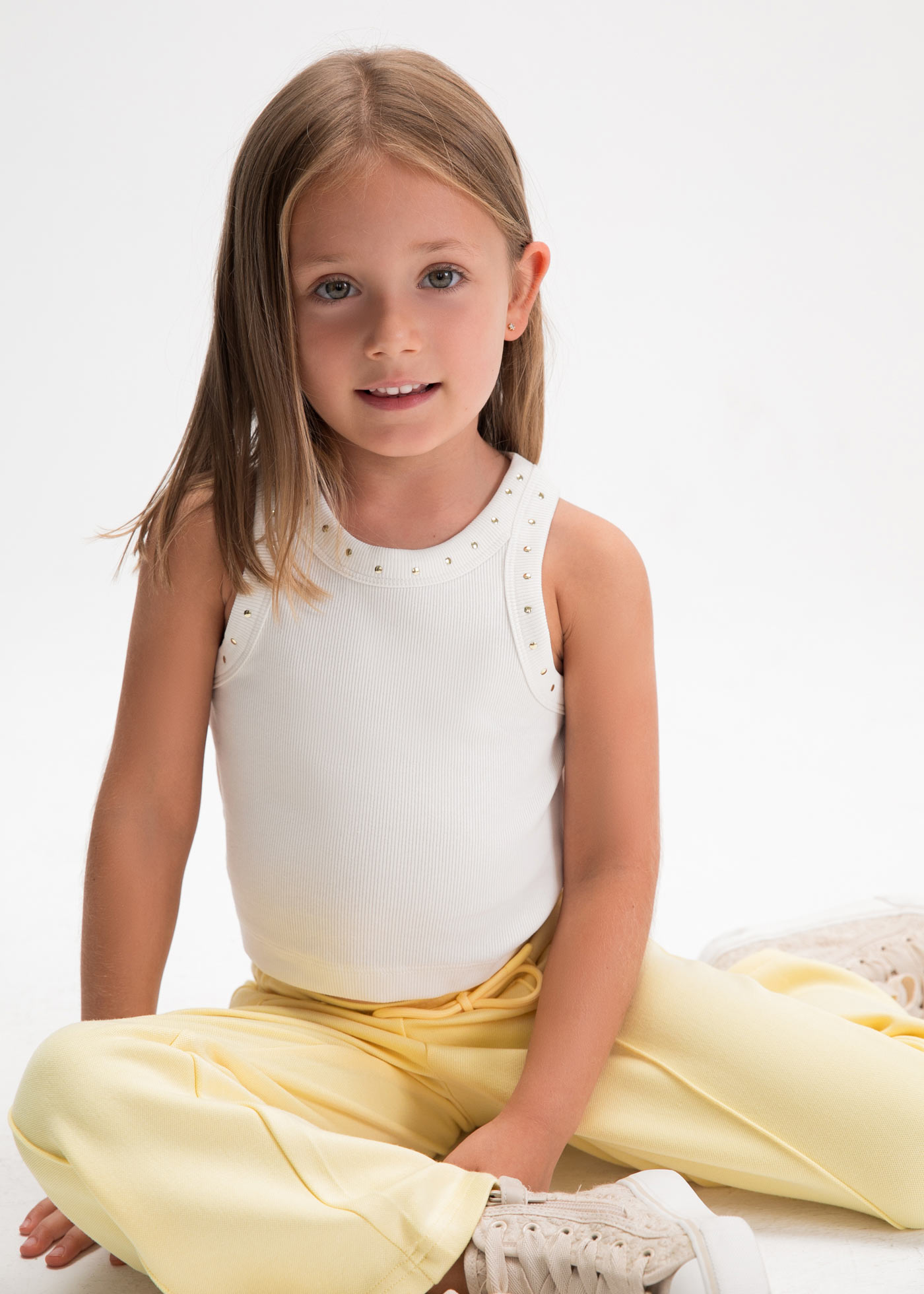 Ανανεώστε την καλοκαιρινή γκαρνταρόμπα με αυτή τη μοντέρνα και ευκολοφόρετη παιδική μπλούζα Mayoral σε εκρού απόχρωση, ιδανική για κορίτσια που αγαπούν το άνετο αλλά κομψό στυλ. Ένα basic κομμάτι με διακριτικές λεπτομέρειες που ταιριάζει εύκολα σε κάθε outfit.Η μπλούζα διαθέτει εφαρμοστή γραμμή και είναι κατασκευασμένη από ριπ βαμβακερό ύφασμα, προσφέροντας άνεση και ευχάριστη αίσθηση στο δέρμα. Οι φαρδιές τιράντες και η στρογγυλή λαιμόκοψη διακοσμούνται με μικρά μεταλλικά τρουκς, προσθέτοντας μοντέρνο και κοριτσίστικο χαρακτήρα. Ιδανική για καθημερινή χρήση αλλά και πιο προσεγμένες εμφανίσεις.