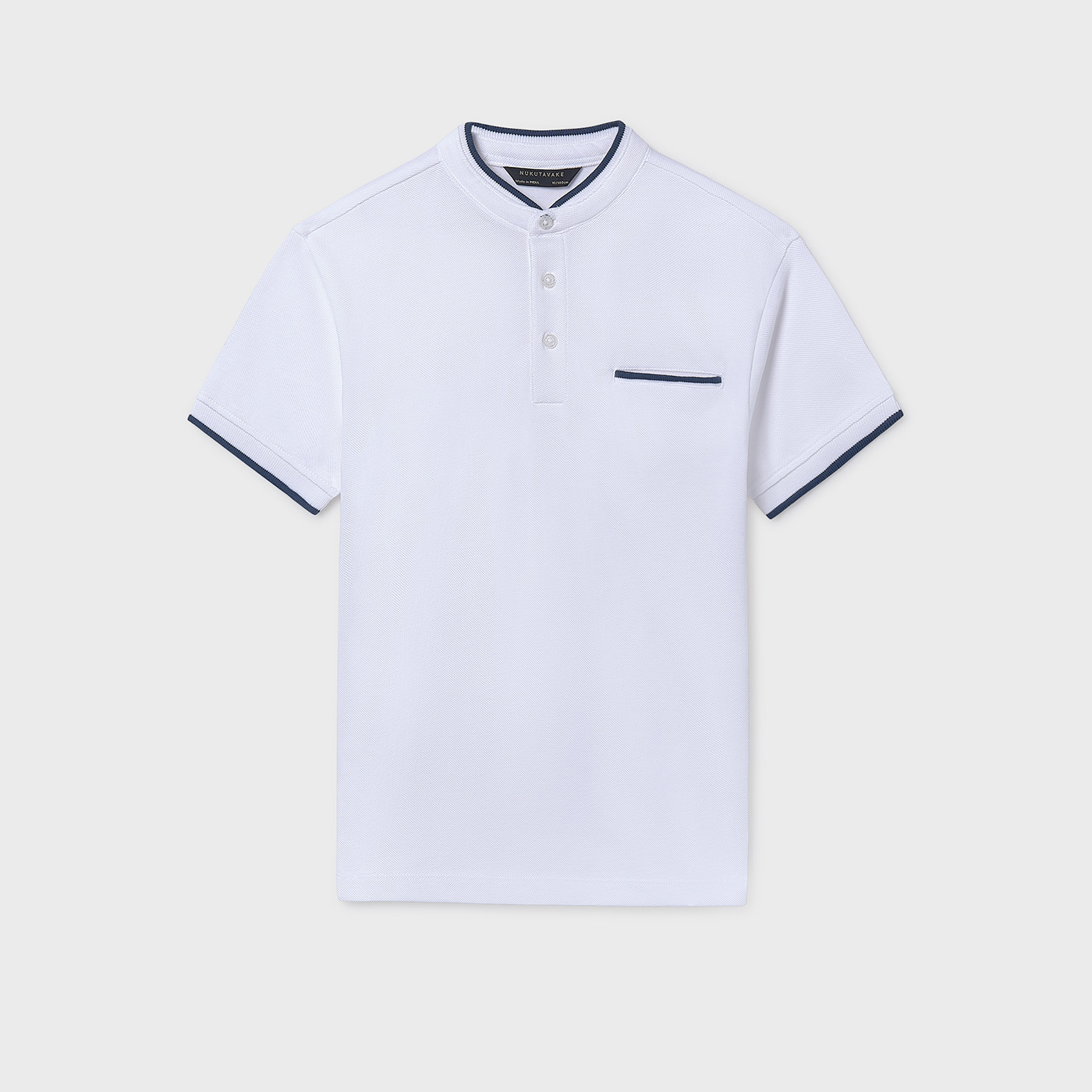 Η παιδική μπλούζα πόλο Mayoral για αγόρια με μάο γιακά σε λευκή απόχρωση είναι η ιδανική επιλογή για γονείς που αναζητούν ένα ρούχο κομψό αλλά και πρακτικό. Συνδυάζει το smart casual ύφος με την άνεση που χρειάζεται το παιδί στην καθημερινότητά του.Κατασκευασμένη από βαμβακερό πικέ ύφασμα υψηλής ποιότητας, προσφέρει άριστη διαπνοή και απαλή αίσθηση στο δέρμα. Ο μάο γιακάς με κουμπιά προσδίδει μοντέρνο και προσεγμένο χαρακτήρα, ενώ οι λεπτομέρειες στο γιακά, στα μανίκια και στην τσέπη αναβαθμίζουν αισθητικά το σύνολο.Η λευκή απόχρωση είναι διαχρονική και ευκολοσυνδύαστη, ιδανική για εμφανίσεις με τζιν, chino παντελόνια ή βερμούδες, από το σχολείο έως οικογενειακές εκδηλώσεις.
