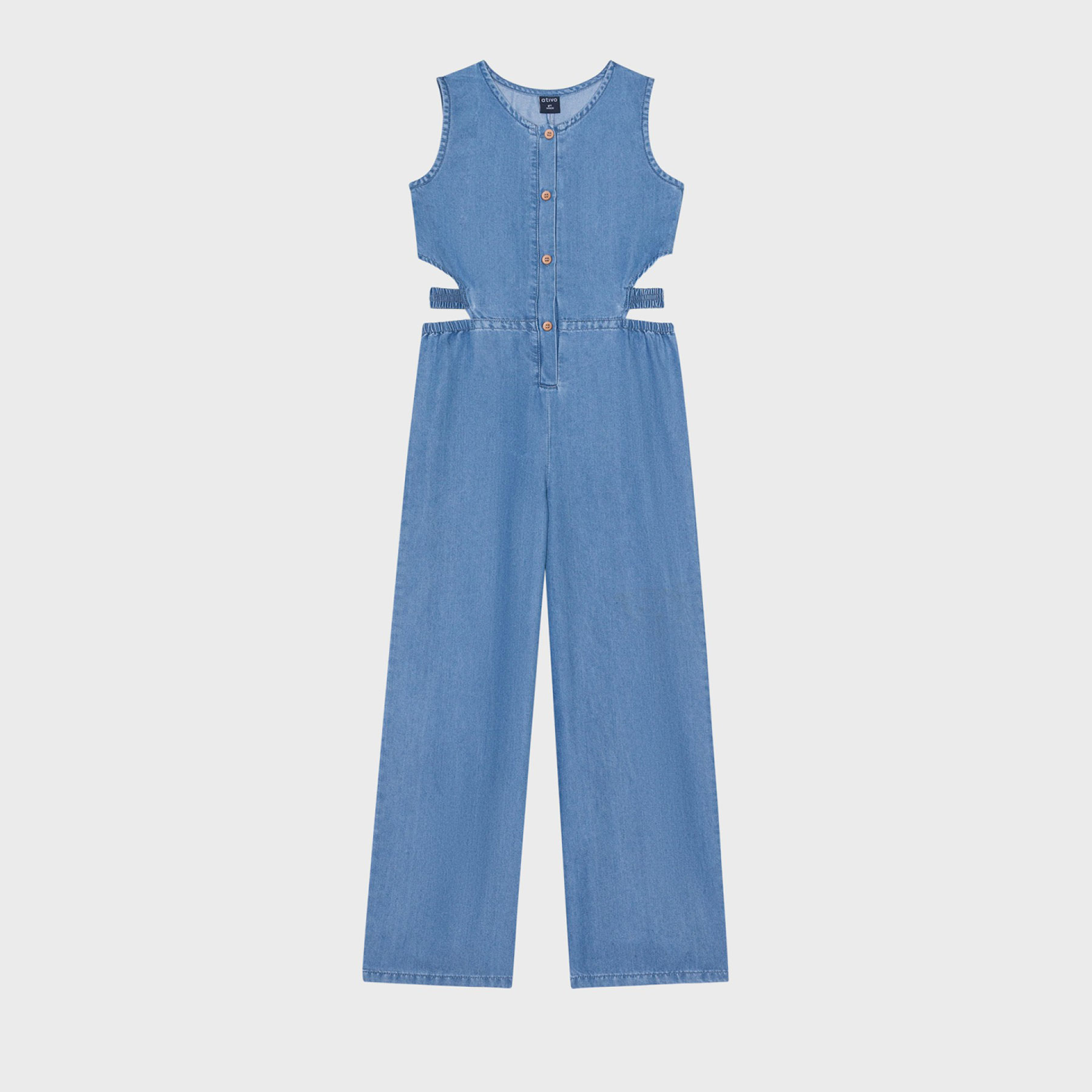 Η παιδική ολόσωμη φόρμα για κορίτσια Ativo σε denim (τζιν) ύφασμα αποτελεί ένα must-have κομμάτι για μοντέρνες και άνετες εμφανίσεις. Με sleeveless σχεδιασμό, κουμπιά μπροστά και cut-out λεπτομέρειες στη μέση, προσφέρει ένα ξεχωριστό και fashion-forward look.