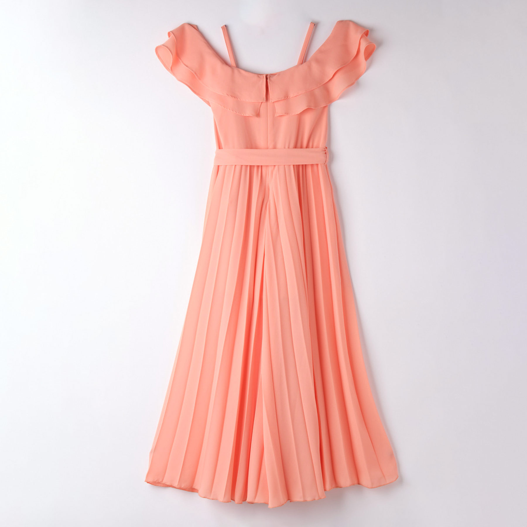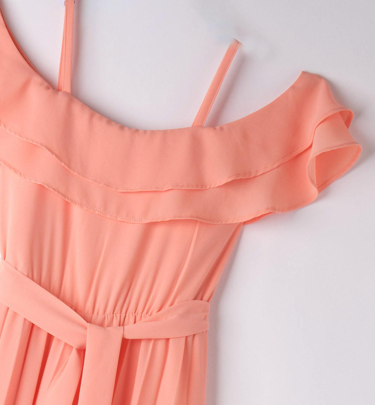 Παιδικά ρούχα I-DO Παιδική ολόσωμη φόρμα I-DO Παιδική ολόσωμη φόρμα για κορίτσια πλισέ I-DO κοραλί με βολάν και ζώνη