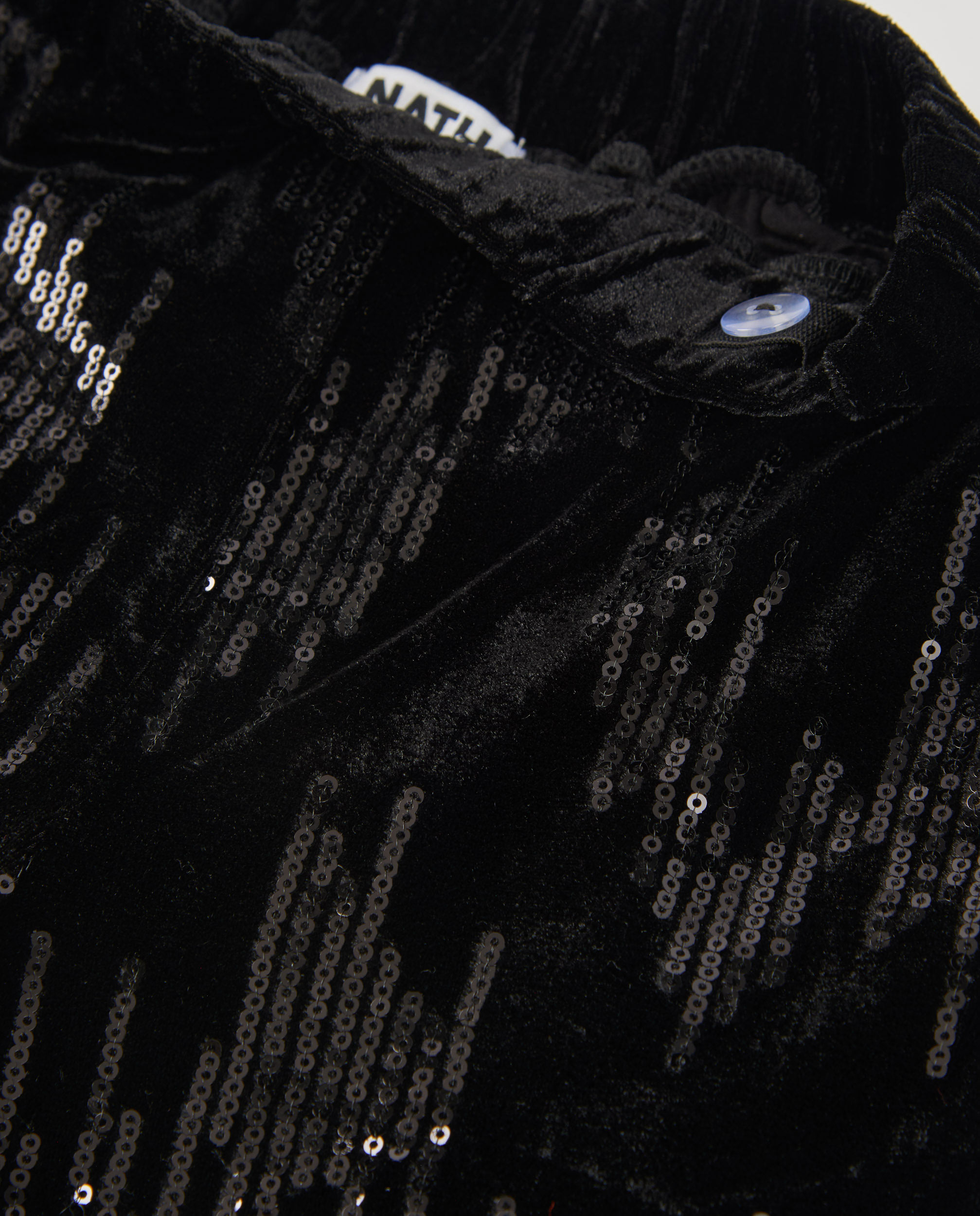 Η παιδική παντελόνα βελουτέ με παγιέτες για κορίτσια από τη συλλογή Nathkids είναι η ιδανική επιλογή για ξεχωριστές εμφανίσεις με λάμψη και στυλ. Σε κλασικό μαύρο χρώμα, με βελουτέ υφή και διακριτικά σχέδια από παγιέτες που χαρίζουν μοναδική λάμψη σε κάθε κίνηση, συνδυάζει την άνεση με την κομψότητα.