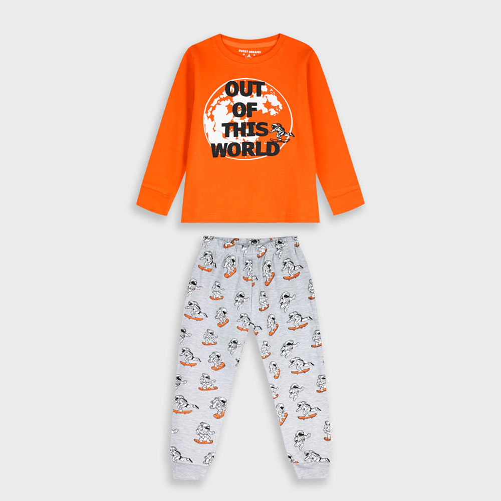 Χαρίστε στο παιδί σας άνεση και στυλ στον ύπνο με την παιδική πυτζάμα Energiers για αγόρια σε πορτοκαλί και γκρι χρώμα. Το σετ περιλαμβάνει: