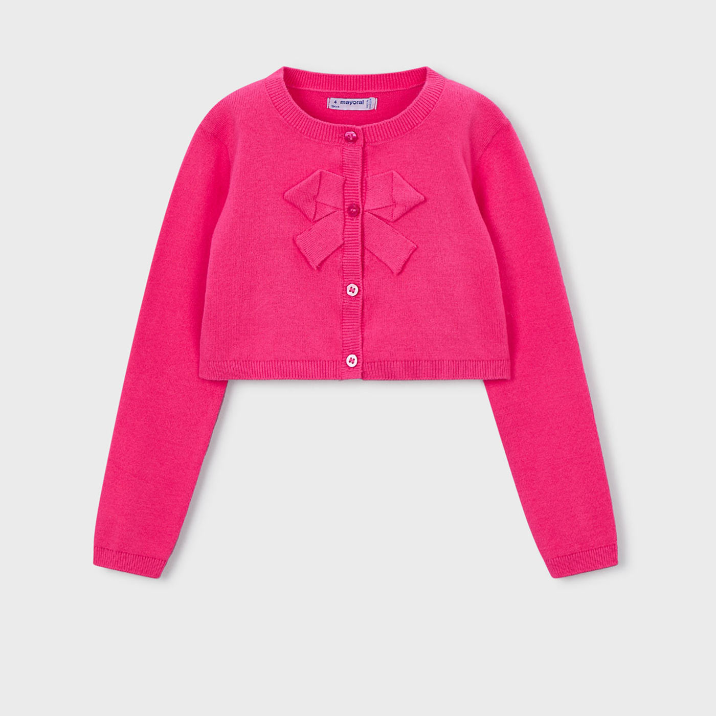 Χαρίστε χρώμα και κομψότητα στις εμφανίσεις της μικρής σας με την παιδική ζακέτα Mayoral σε εντυπωσιακό φούξια χρώμα. Πρόκειται για ένα κομψό και άνετο κομμάτι, ιδανικό για καθημερινές αλλά και πιο ιδιαίτερες περιστάσεις, που συνδυάζει πρακτικότητα και girly αισθητική.Η ζακέτα διαθέτει κλασική στρογγυλή λαιμόκοψη και κουμπώνει μπροστά με κουμπιά, ενώ το διακριτικό πλεκτό φιόγκο στο στήθος προσθέτει μια χαριτωμένη και elegant πινελιά. Η απαλή πλεκτή υφή της προσφέρει άνεση και ζεστασιά, χωρίς να βαραίνει, καθιστώντας την ιδανική για άνοιξη, φθινόπωρο αλλά και δροσερά καλοκαιρινά βράδια.Συνδυάζεται εύκολα με φορέματα, φούστες ή παντελόνια και αποτελεί βασικό κομμάτι της παιδικής γκαρνταρόμπας.