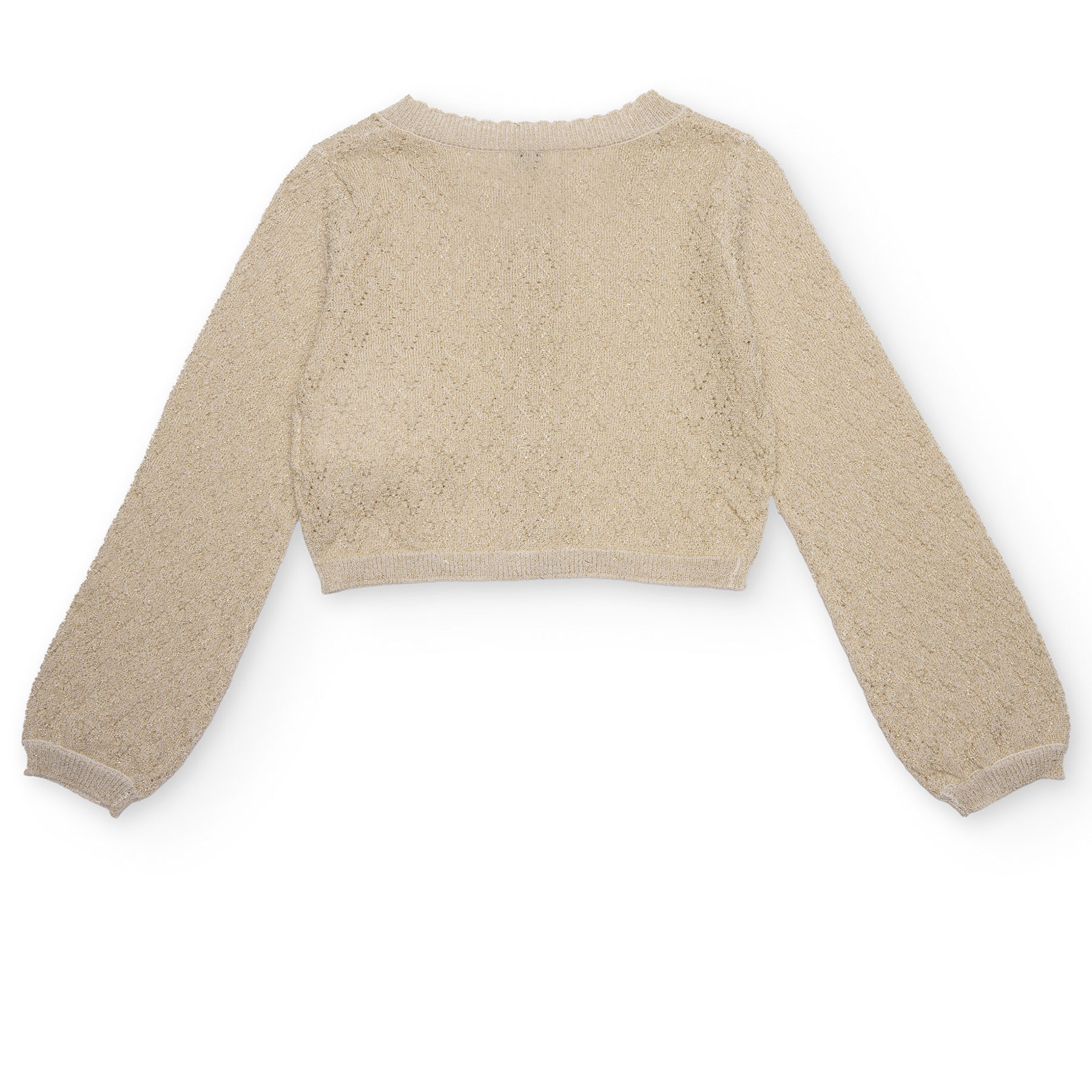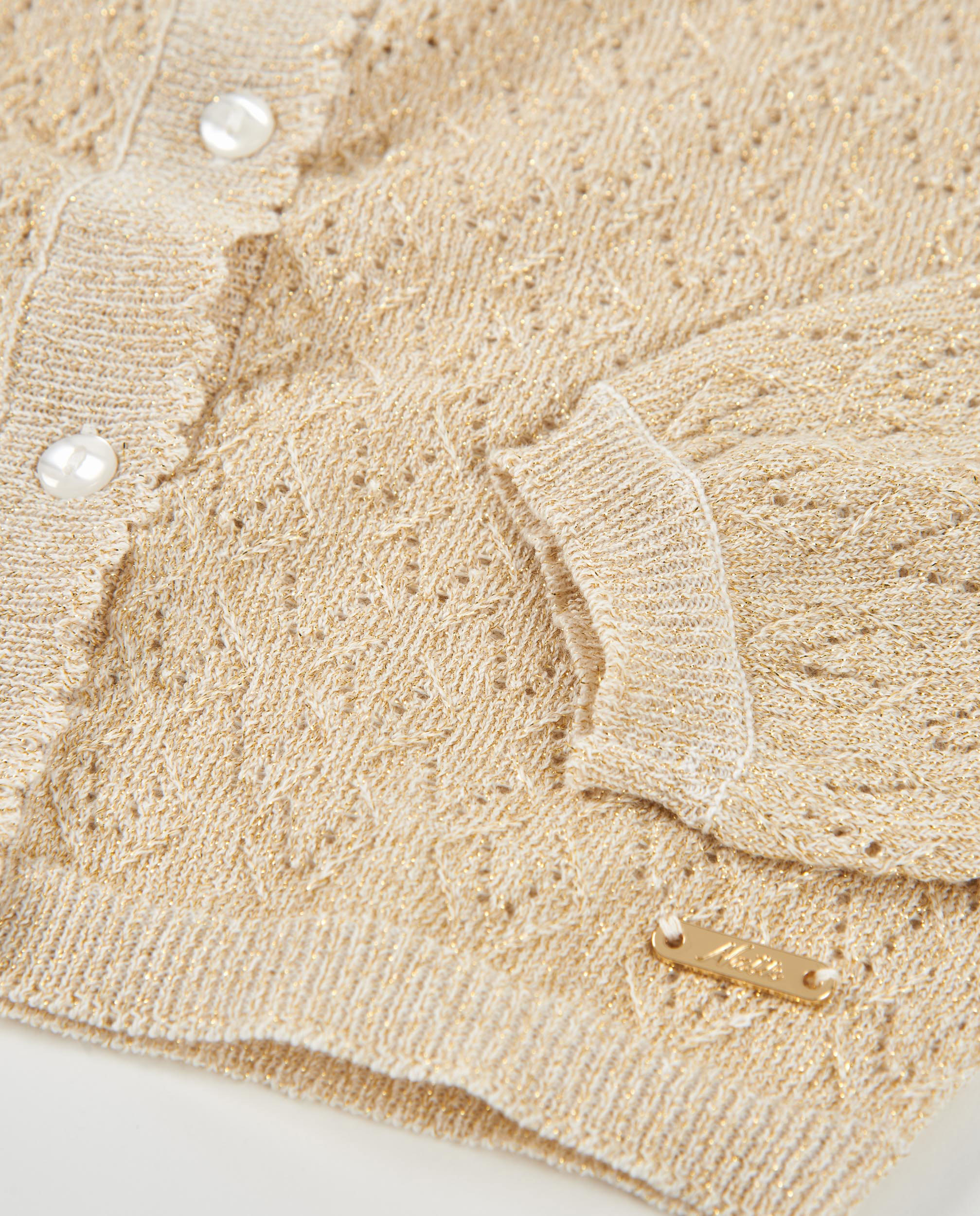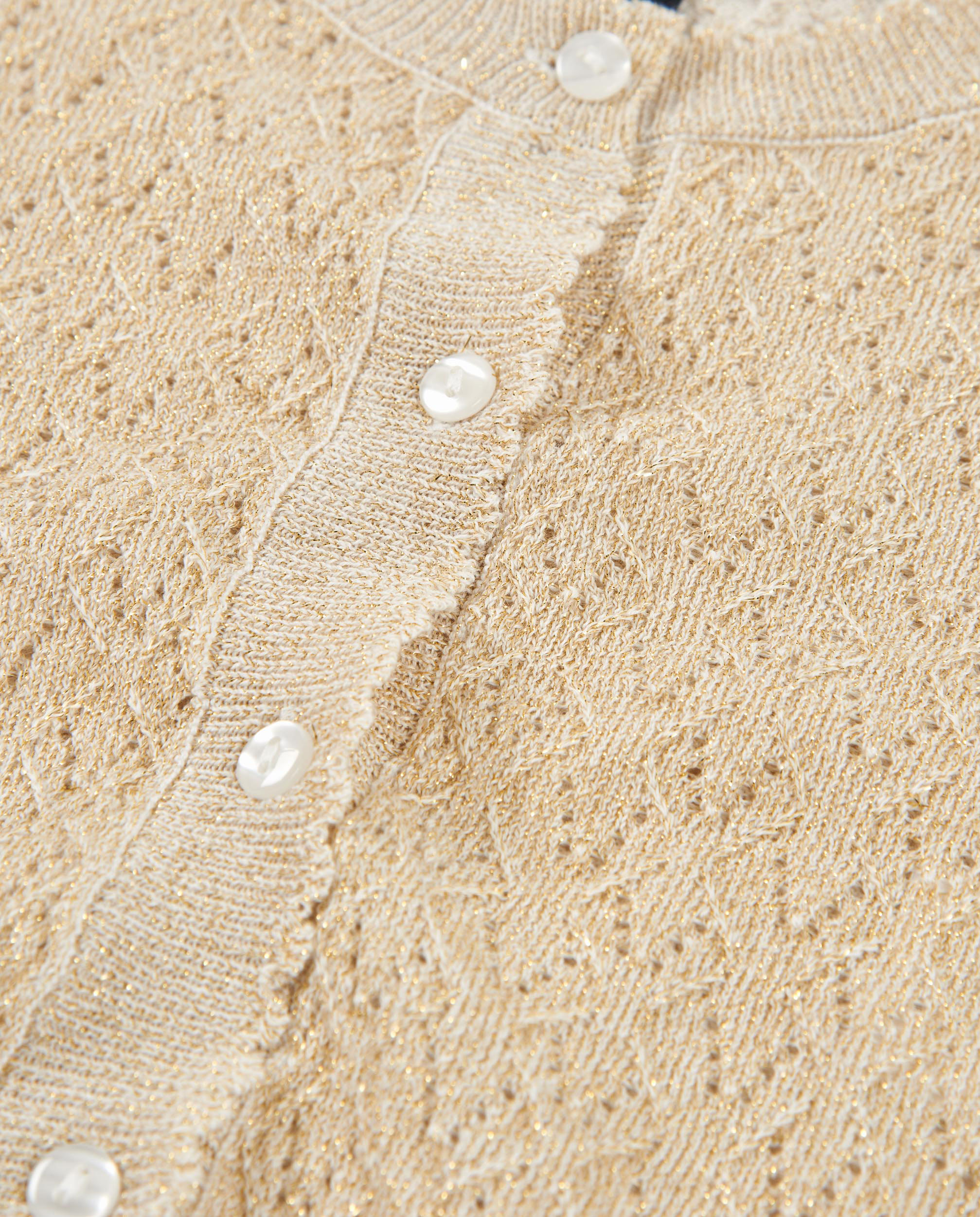 Η παιδική ζακέτα για κορίτσια Nathkids σε λαμπερή χρυσή απόχρωση αποτελεί μια κομψή και ξεχωριστή επιλογή που αναβαθμίζει κάθε παιδικό σύνολο με διακριτική λάμψη. Κατασκευασμένη από απαλό πλεκτό ύφασμα με μεταλλιζέ υφή, προσφέρει άνεση και ευχάριστη αίσθηση στο σώμα, ενώ παράλληλα χαρίζει elegant χαρακτήρα ιδανικό για γιορτές, εκδηλώσεις και ιδιαίτερες περιστάσεις. Διαθέτει στρογγυλή λαιμόκοψη, κουμπιά σε όλο το μήκος για εύκολο άνοιγμα και κλείσιμο, καθώς και cropped γραμμή που ταιριάζει τέλεια με φορέματα, φούστες ή ψηλόμεσα παντελόνια. Τα μακριά μανίκια με ελαστικά τελειώματα εξασφαλίζουν σταθερή εφαρμογή και άνεση στην κίνηση. Η χρυσή απόχρωση προσθέτει φωτεινότητα και πολυτελή αισθητική, καθιστώντας τη ζακέτα ιδανική για layering πάνω από basic μπλούζες ή επίσημα φορέματα. Ένα διαχρονικό και ποιοτικό κομμάτι που συνδυάζει στυλ, πρακτικότητα και κοριτσίστικη κομψότητα σε κάθε εμφάνιση.