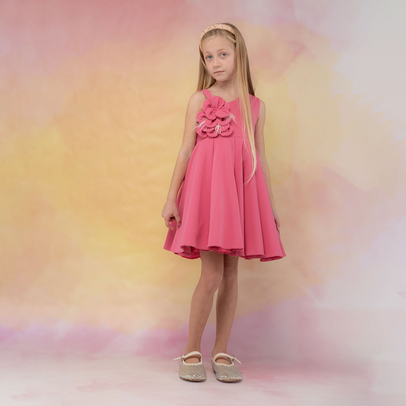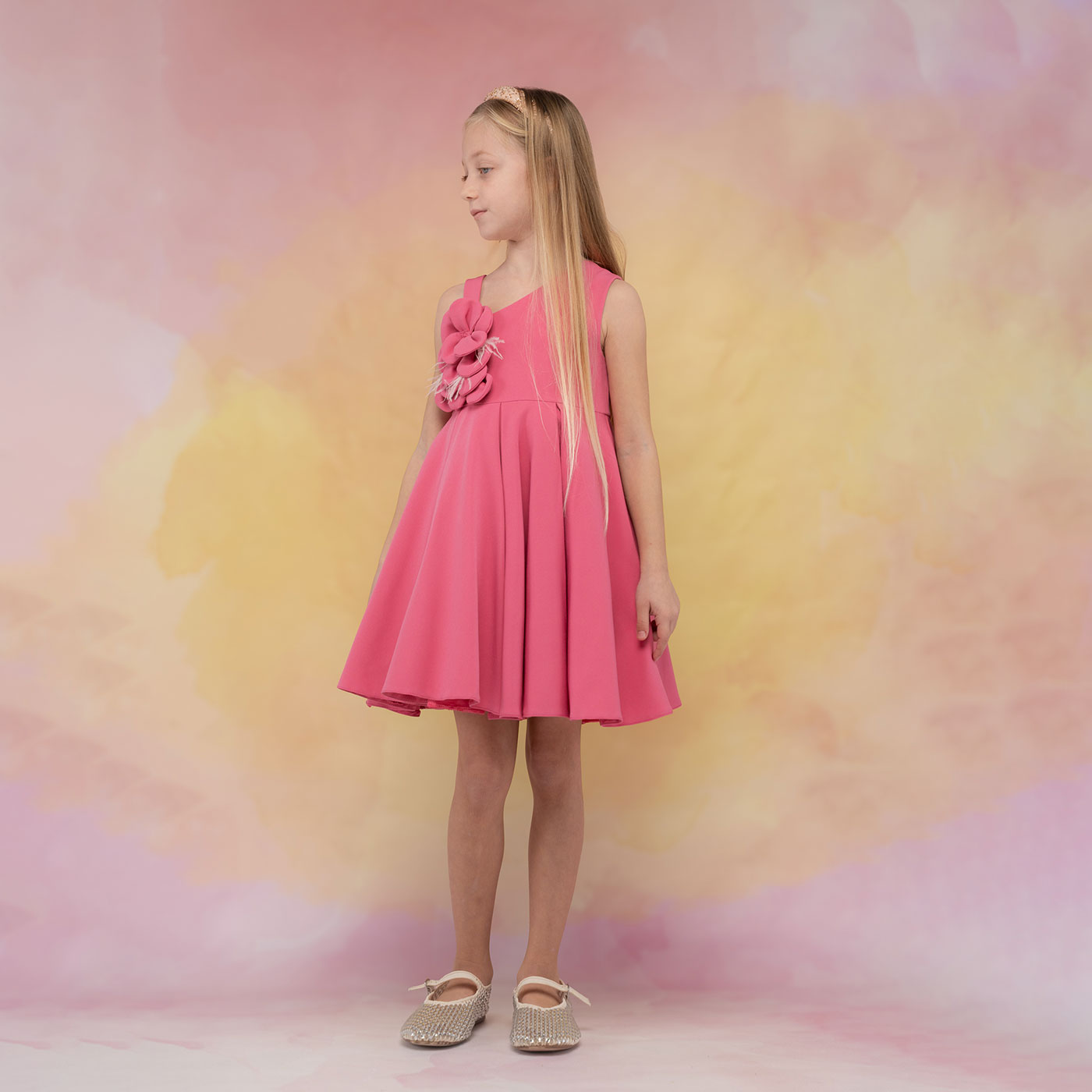 Το παιδικό φόρεμα Ebita σε φωτεινή φούξια απόχρωση είναι μια ξεχωριστή επιλογή για κομψές και χαρούμενες εμφανίσεις. Διαθέτει αμάνικο σχέδιο με εντυπωσιακό τρισδιάστατο λουλούδι στο επάνω μέρος, που χαρίζει ρομαντική και girly αισθητική, ιδανική για ιδιαίτερες περιστάσεις.Η αέρινη γραμμή με πλούσια φούστα προσφέρει άνεση και όμορφη κίνηση, ενώ το ποιοτικό ύφασμα εξασφαλίζει σταθερή εφαρμογή και κομψό αποτέλεσμα. Ένα φόρεμα ιδανικό για γιορτές, βαπτίσεις, γενέθλια και καλοκαιρινές εκδηλώσεις.
