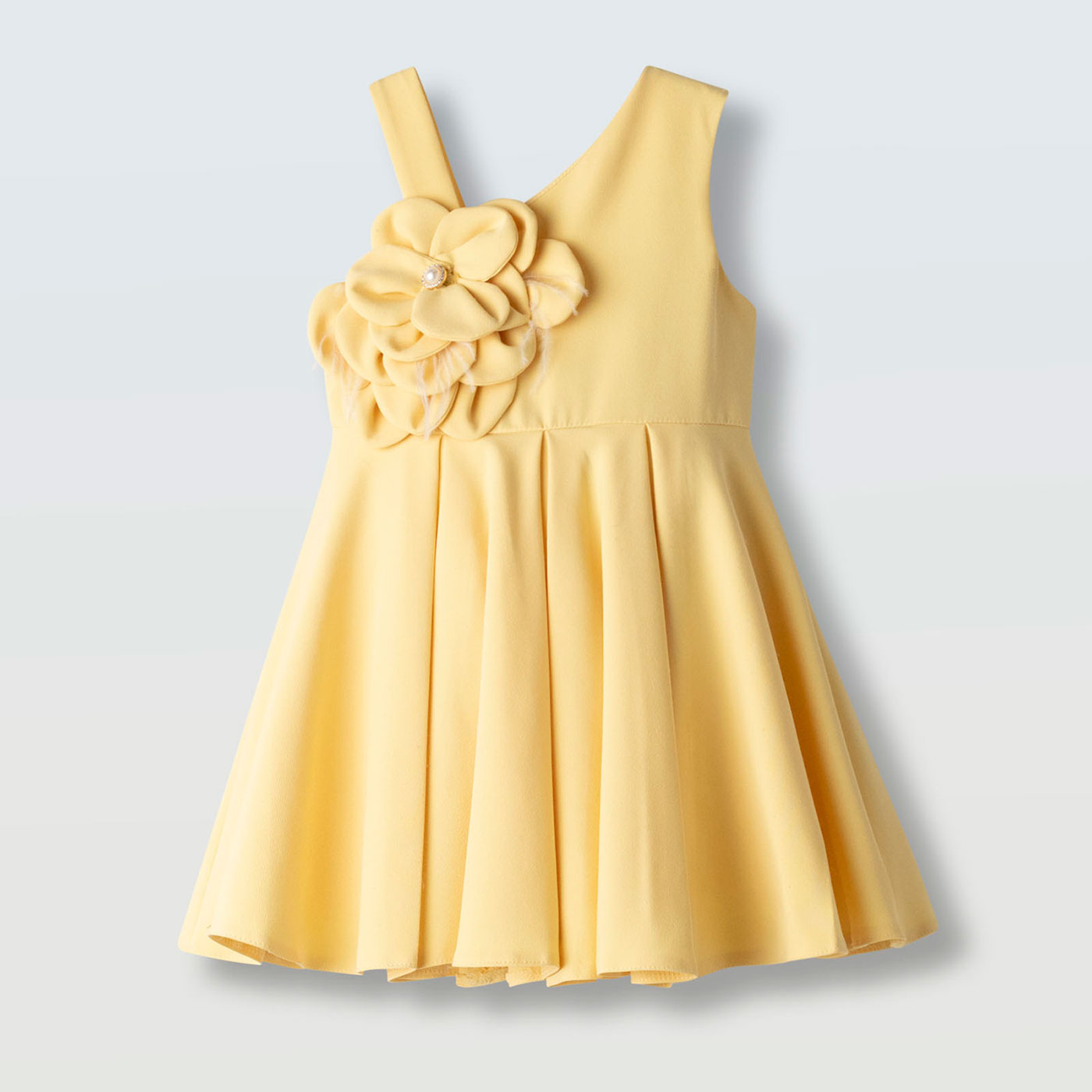 Το παιδικό φόρεμα Ebita σε φωτεινή κίτρινη απόχρωση είναι μια ξεχωριστή επιλογή για κομψές και χαρούμενες εμφανίσεις. Διαθέτει αμάνικο σχέδιο με εντυπωσιακό τρισδιάστατο λουλούδι στο επάνω μέρος, που χαρίζει ρομαντική και girly αισθητική, ιδανική για ιδιαίτερες περιστάσεις.Η αέρινη γραμμή με πλούσια φούστα προσφέρει άνεση και όμορφη κίνηση, ενώ το ποιοτικό ύφασμα εξασφαλίζει σταθερή εφαρμογή και κομψό αποτέλεσμα. Ένα φόρεμα ιδανικό για γιορτές, βαπτίσεις, γενέθλια και καλοκαιρινές εκδηλώσεις.