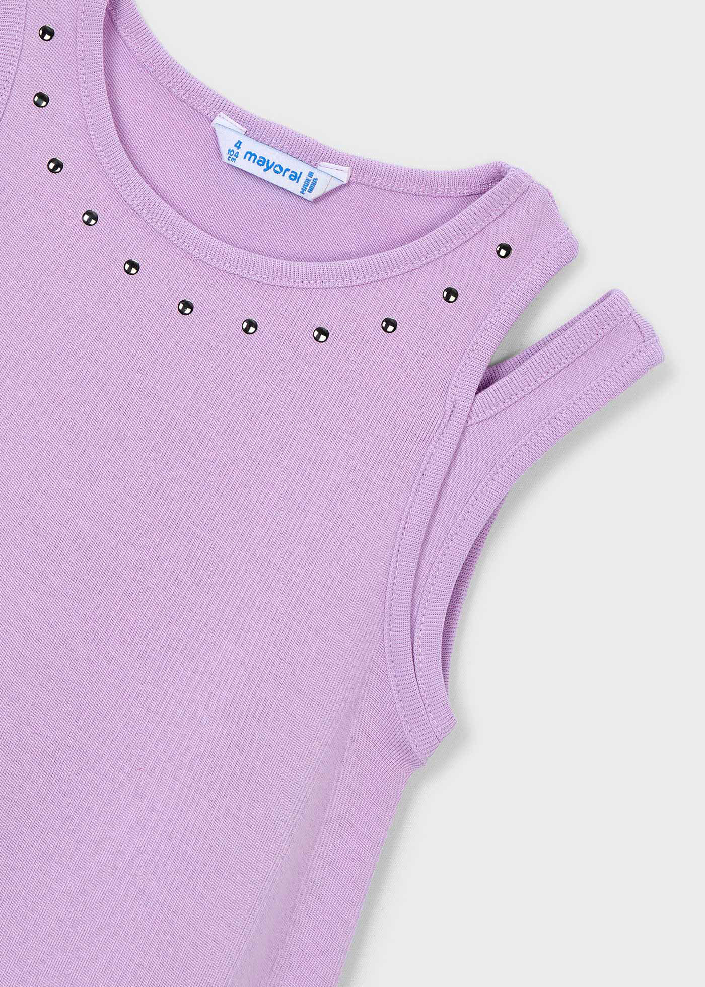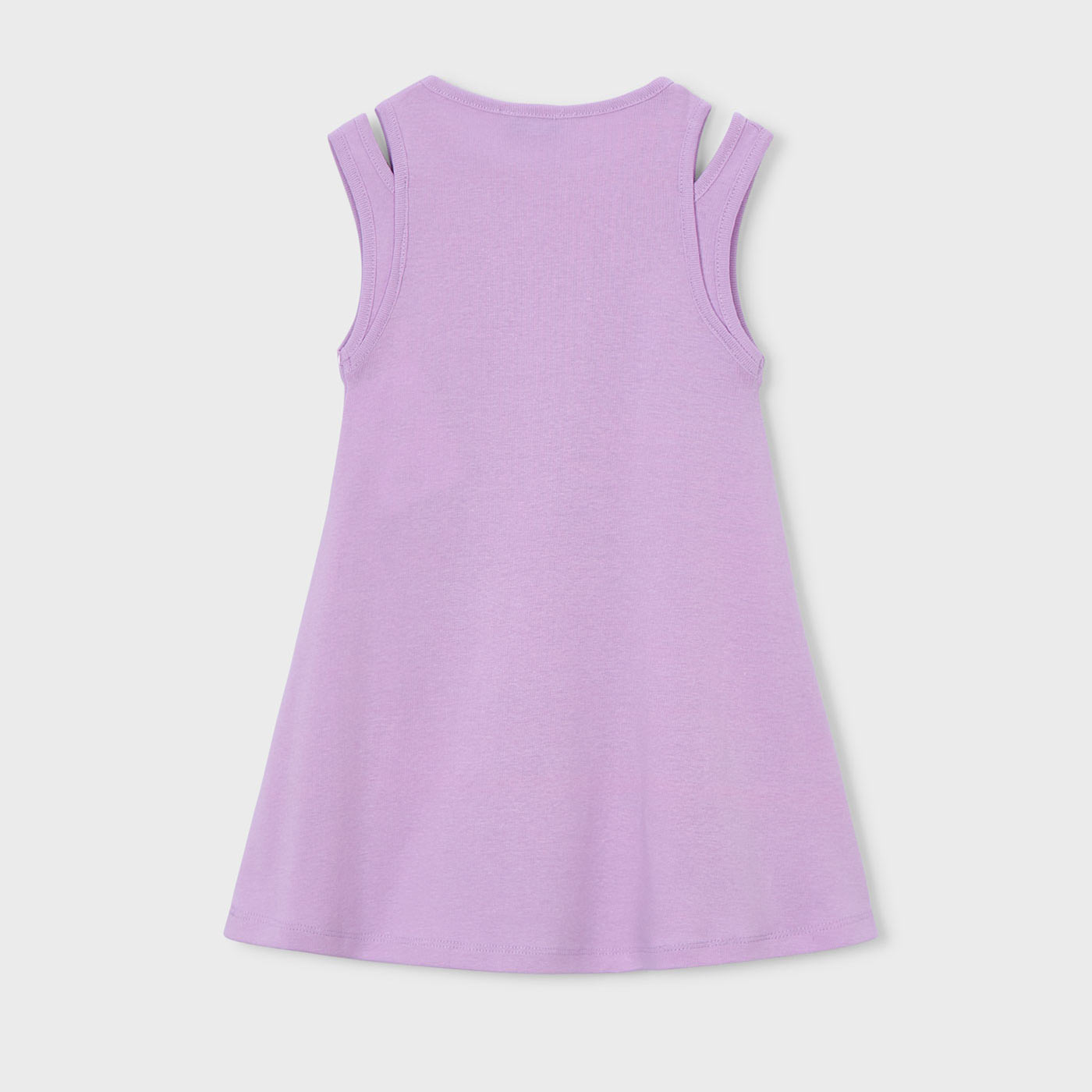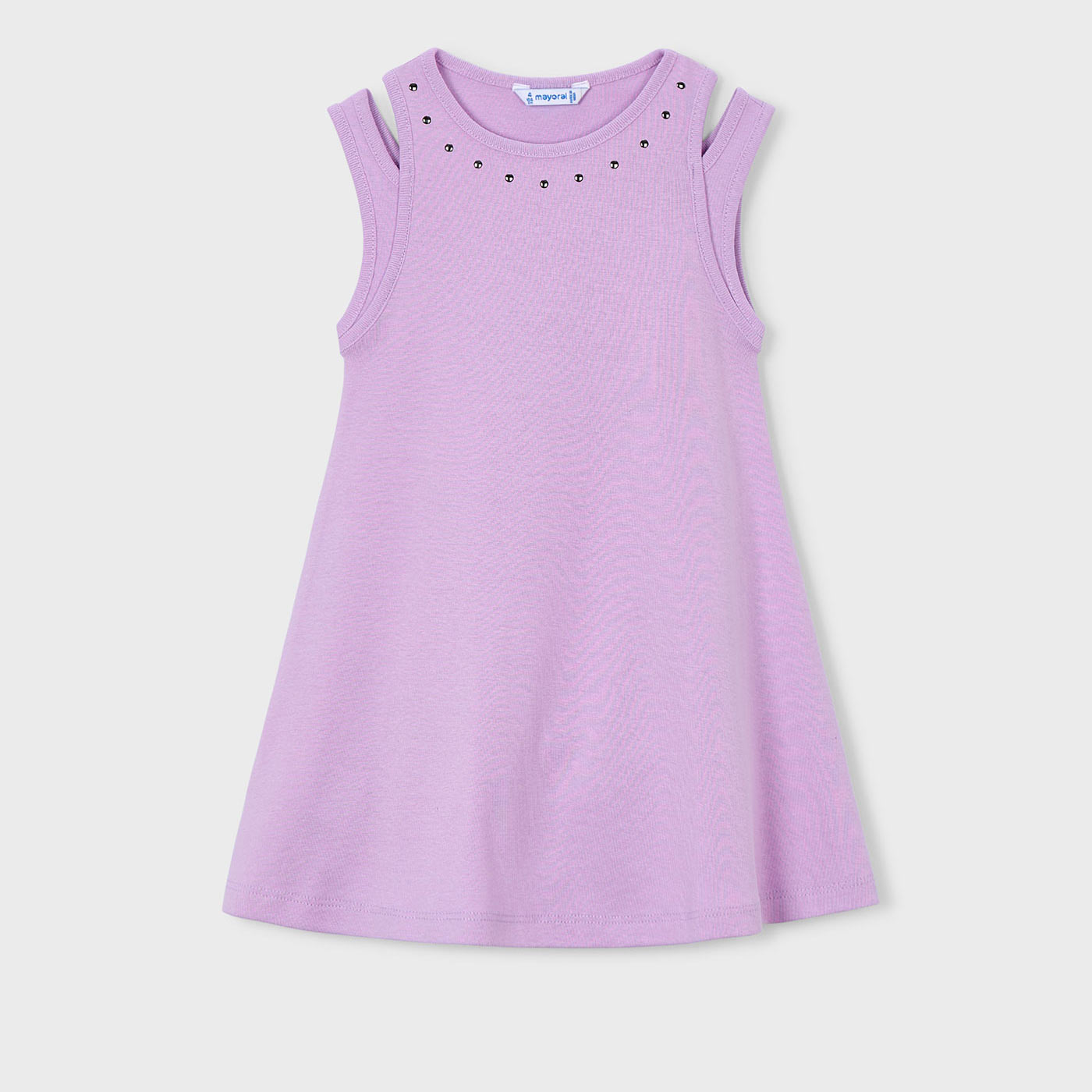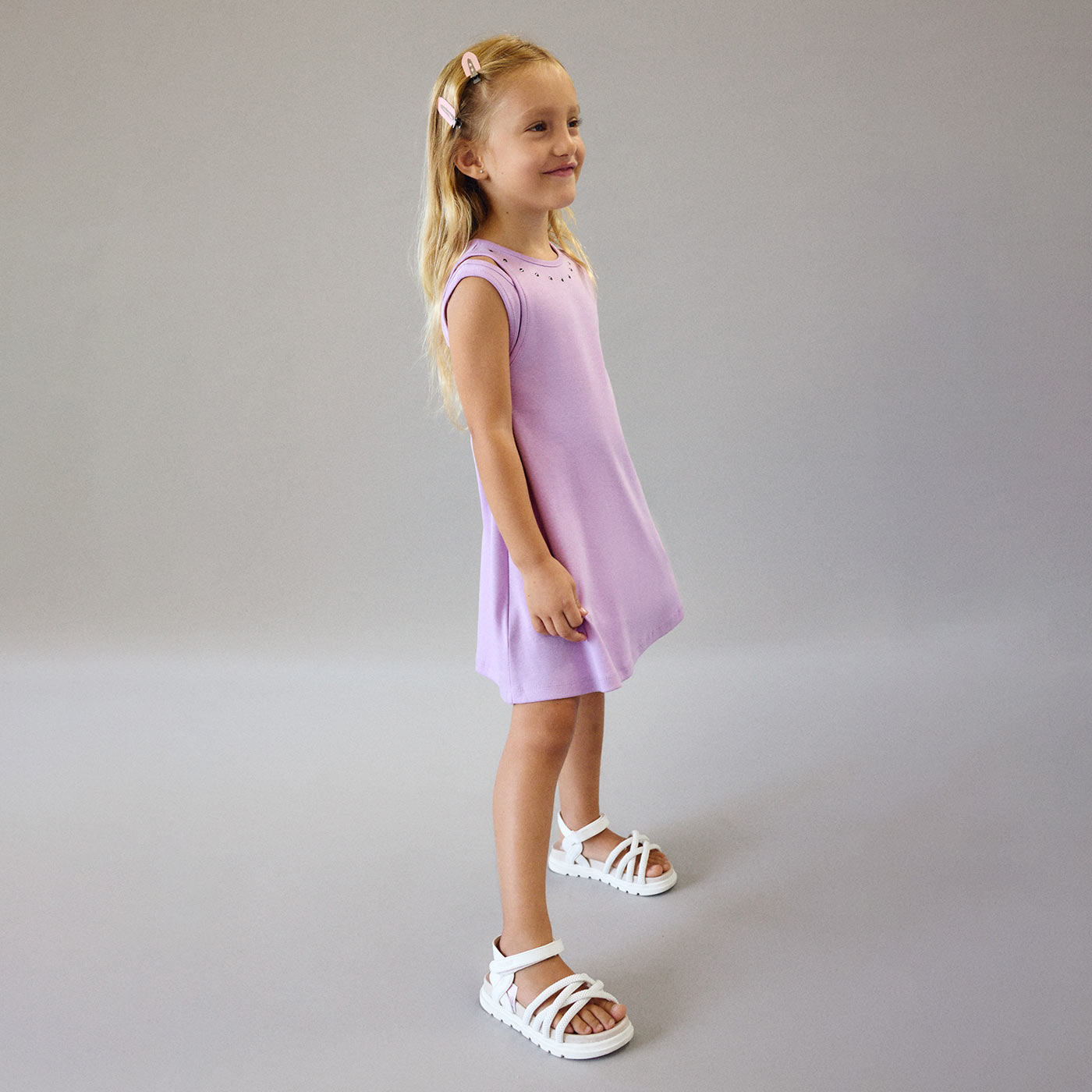 Κομψό και σύγχρονο, αυτό το παιδικό φόρεμα Mayoral για κορίτσια ξεχωρίζει για το minimal design του με μοντέρνες λεπτομέρειες. Το λιλά χρώμα χαρίζει φρεσκάδα και καλοκαιρινή διάθεση, ενώ οι cut out λεπτομέρειες στους ώμους προσθέτουν ιδιαίτερο στιλ χωρίς να χάνεται η άνεση.Το φόρεμα είναι κατασκευασμένο από μαλακό βαμβακερό ύφασμα, ιδανικό για ευαίσθητες παιδικές επιδερμίδες. Η διακριτική σειρά από μεταλλικά τρουκς στο ντεκολτέ προσδίδει μία fashion πινελιά, καθιστώντας το κατάλληλο τόσο για καθημερινές όσο και για πιο προσεγμένες εμφανίσεις. Η άνετη Α-γραμμή επιτρέπει ελευθερία κινήσεων και δροσερή εφαρμογή.