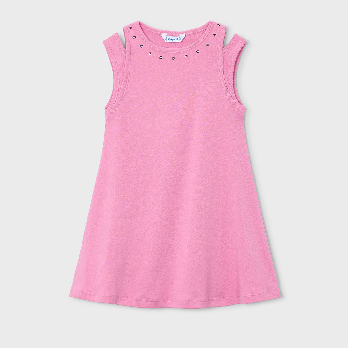 Κομψό και σύγχρονο, αυτό το παιδικό φόρεμα Mayoral για κορίτσια ξεχωρίζει για το minimal design του με μοντέρνες λεπτομέρειες. Το ροζ χρώμα χαρίζει φρεσκάδα και καλοκαιρινή διάθεση, ενώ οι cut out λεπτομέρειες στους ώμους προσθέτουν ιδιαίτερο στιλ χωρίς να χάνεται η άνεση.Το φόρεμα είναι κατασκευασμένο από μαλακό βαμβακερό ύφασμα, ιδανικό για ευαίσθητες παιδικές επιδερμίδες. Η διακριτική σειρά από μεταλλικά τρουκς στο ντεκολτέ προσδίδει μία fashion πινελιά, καθιστώντας το κατάλληλο τόσο για καθημερινές όσο και για πιο προσεγμένες εμφανίσεις. Η άνετη Α-γραμμή επιτρέπει ελευθερία κινήσεων και δροσερή εφαρμογή.