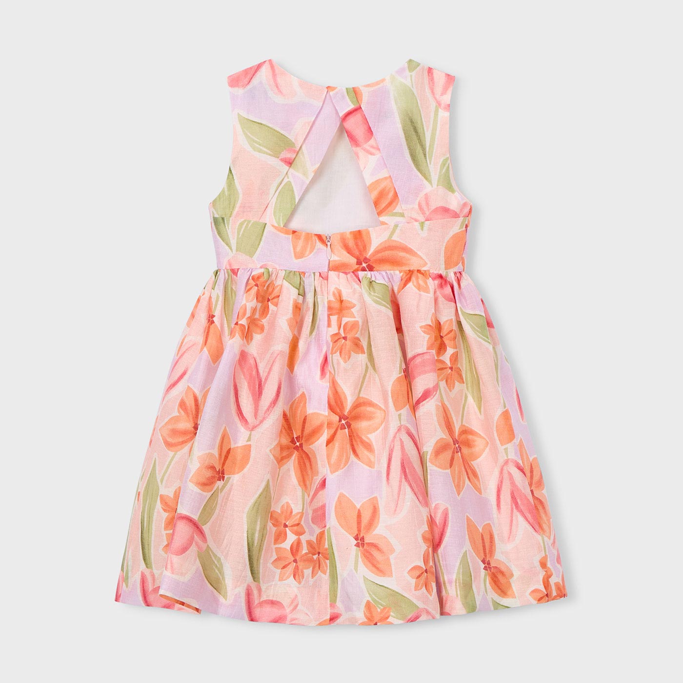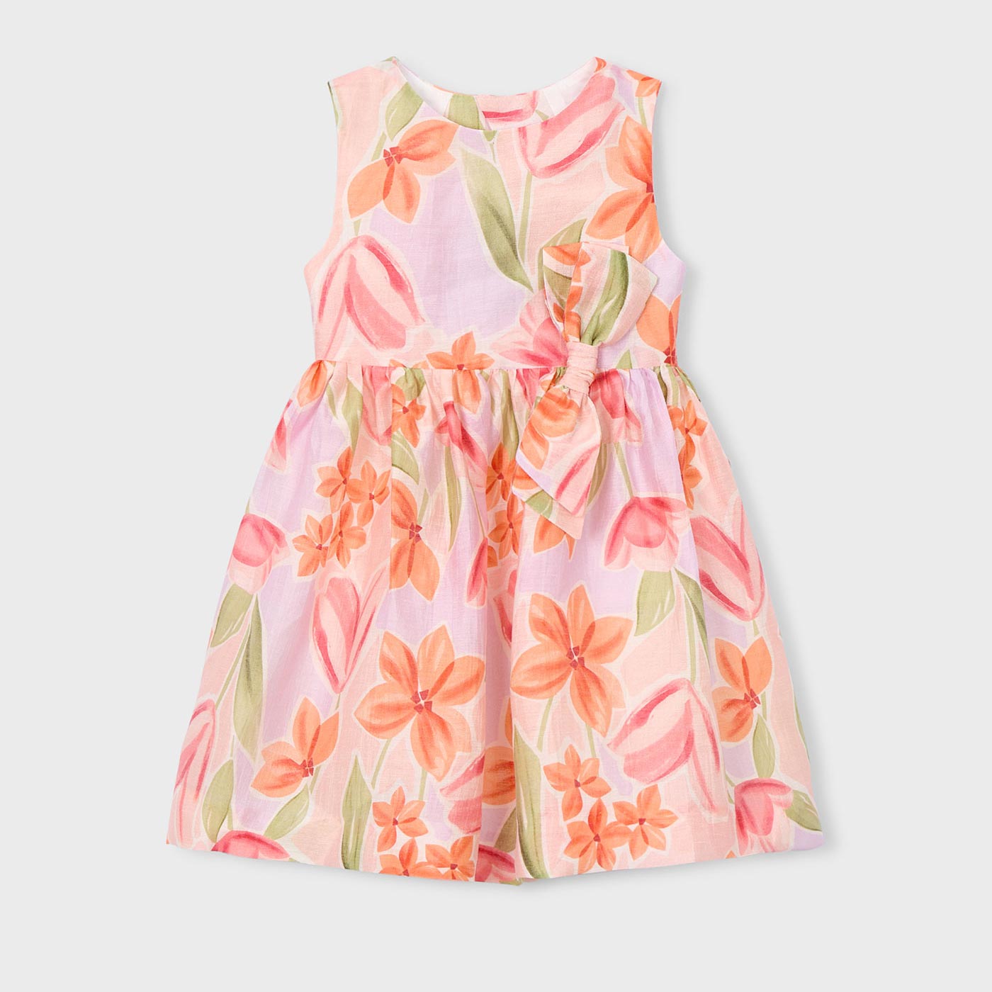 Χαρίστε ανοιξιάτικη φρεσκάδα και κομψότητα στο ντύσιμο της μικρής σας με αυτό το υπέροχο παιδικό φόρεμα Mayoral σε ροζ φλοράλ αποχρώσεις. Ένα αέρινο και ρομαντικό σχέδιο, ιδανικό για ξεχωριστές εμφανίσεις αλλά και καθημερινές βόλτες με στυλ.Το φόρεμα ξεχωρίζει για το λουλουδάτο μοτίβο σε απαλούς τόνους ροζ, κοραλί και πράσινου, που αποπνέει καλοκαιρινή διάθεση. Διαθέτει αμάνικο σχέδιο, άνετη γραμμή και διακοσμητικό φιόγκο στη μέση, που προσθέτει μια γλυκιά, κοριτσίστικη πινελιά. Το ελαφρύ και δροσερό ύφασμα προσφέρει άνεση και ελευθερία κινήσεων, ενώ το άνοιγμα στην πλάτη χαρίζει επιπλέον κομψότητα.