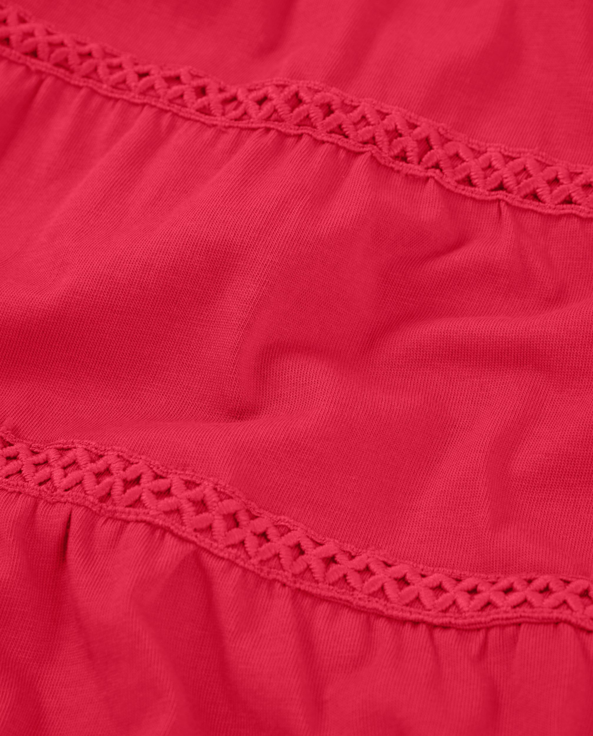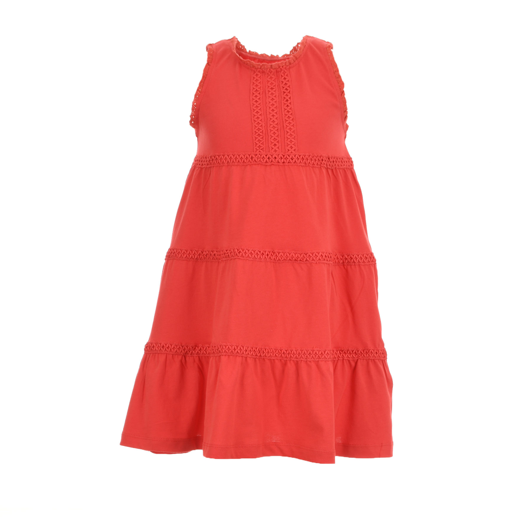 Το παιδικό φόρεμα για κορίτσια Nathkids σε έντονο κόκκινο χρώμα είναι μια κομψή και άνετη επιλογή για καθημερινές αλλά και πιο ιδιαίτερες εμφανίσεις. Με ρομαντικές λεπτομέρειες και διαχρονικό σχεδιασμό, συνδυάζει απλότητα και θηλυκότητα σε ένα κομμάτι που ξεχωρίζει.Διαθέτει αμάνικο σχέδιο για δροσερή αίσθηση, ενώ οι διακοσμητικές δαντελένιες τρέσες στο μπούστο και στα οριζόντια βολάν της φούστας προσθέτουν κομψότητα και ιδιαίτερο χαρακτήρα. Η άνετη, ελαφρώς αέρινη γραμμή του προσφέρει ελευθερία κινήσεων, καθιστώντας το ιδανικό για το σχολείο, τη βόλτα, τις καλοκαιρινές εκδηλώσεις και τις οικογενειακές εξόδους.Το απαλό και ελαφρύ ύφασμα εξασφαλίζει άνεση καθ όλη τη διάρκεια της ημέρας, ενώ η ζωηρή κόκκινη απόχρωση χαρίζει φωτεινότητα και ζωντάνια σε κάθε εμφάνιση. Συνδυάζεται εύκολα με πέδιλα, μπαλαρίνες ή sneakers για διαφορετικά στιλιστικά αποτελέσματα.Ένα κομψό και πρακτικό παιδικό φόρεμα Nathkids κόκκινο για κορίτσια που αγαπούν τα άνετα, θηλυκά και ξεχωριστά καλοκαιρινά σύνολα.