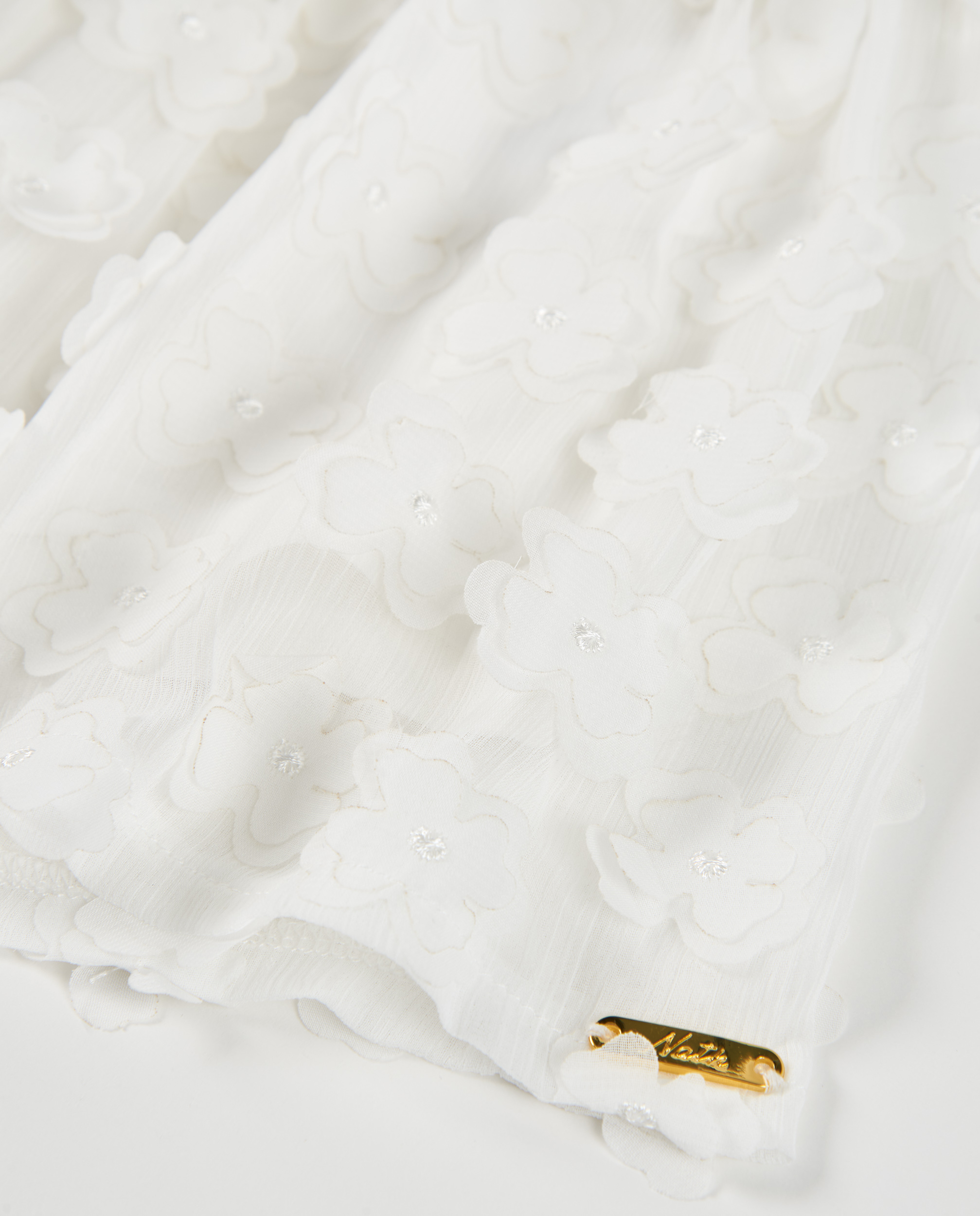 Το παιδικό φόρεμα για κορίτσια Nathkids σε λευκή απόχρωση αποπνέει ρομαντισμό και κομψότητα, αποτελώντας ιδανική επιλογή για ιδιαίτερες περιστάσεις και καλοκαιρινές εμφανίσεις. Κατασκευασμένο από ανάλαφρο ύφασμα με διακριτικές τρισδιάστατες floral λεπτομέρειες σε όλη την επιφάνεια, χαρίζει μοναδική υφή και αέρινη κίνηση σε κάθε βήμα. Διαθέτει στρογγυλή λαιμόκοψη και κοντά μανίκια με απαλή, ελαφρώς βολάν γραμμή που προσθέτουν girly χαρακτήρα, ενώ η ελαφρώς χαμηλή ραφή στη μέση δημιουργεί διακριτικό βολάν στο τελείωμα για πιο ρομαντική σιλουέτα. Η άνετη εφαρμογή επιτρέπει ελευθερία κινήσεων, ενώ το εσωτερικό ύφασμα προσφέρει ευχάριστη αίσθηση στο σώμα. Το λευκό χρώμα αναδεικνύει τη λεπτομέρεια του σχεδίου και συνδυάζεται ιδανικά με μπαλαρίνες ή πέδιλα για γιορτές, βαπτίσεις, σχολικές εκδηλώσεις ή καλοκαιρινές εξόδους. Ένα κομψό και διαχρονικό φόρεμα που χαρίζει λάμψη και φινέτσα σε κάθε μικρή πριγκίπισσα.