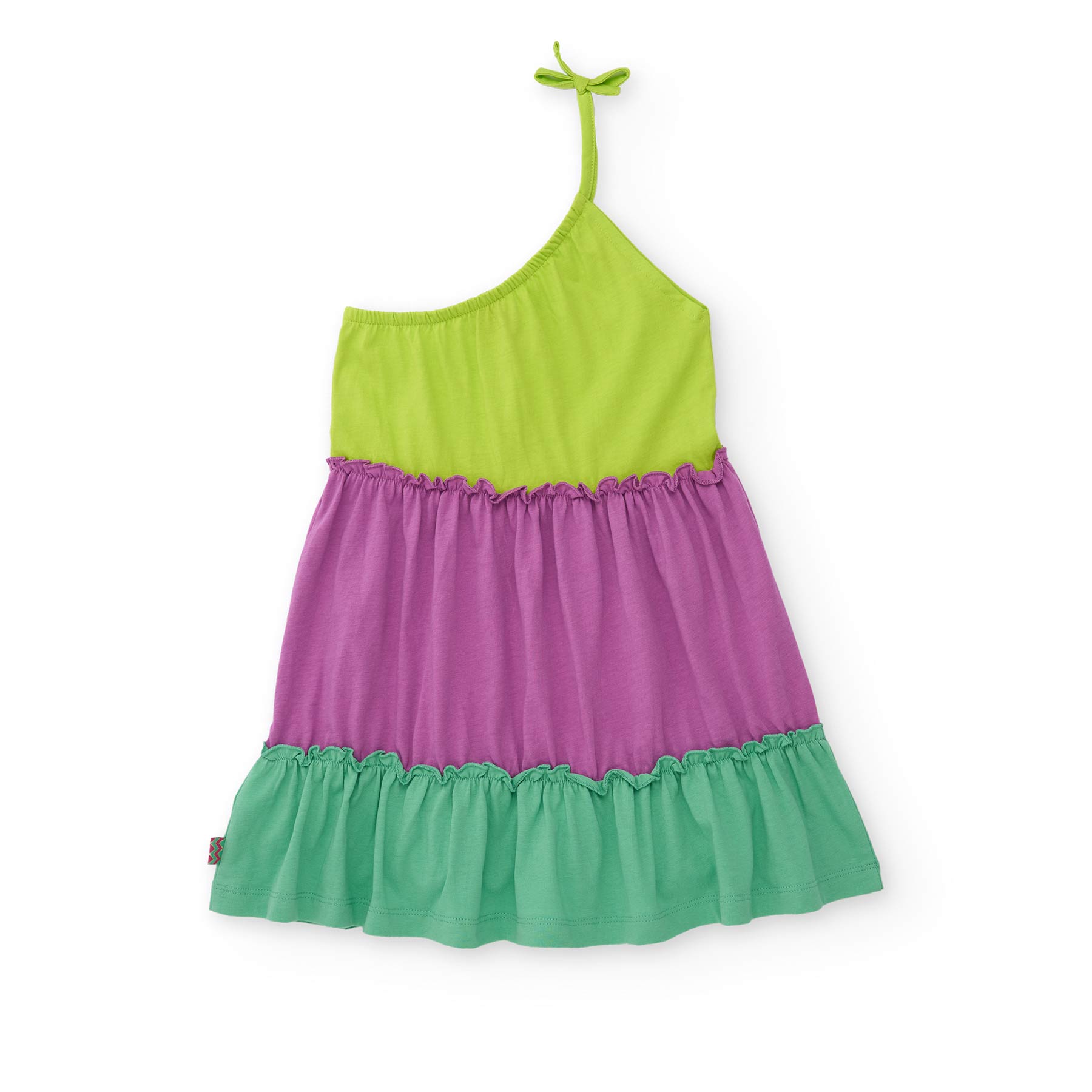 Δώστε ένταση και παιχνιδιάρικη διάθεση στις καλοκαιρινές εμφανίσεις της μικρής σας με το παιδικό φόρεμα Nathkids σε μοναδικό συνδυασμό πράσινου και μωβ. Ένα μοντέρνο, ασύμμετρο σχέδιο που ξεχωρίζει και προσφέρει άνεση όλη μέρα.