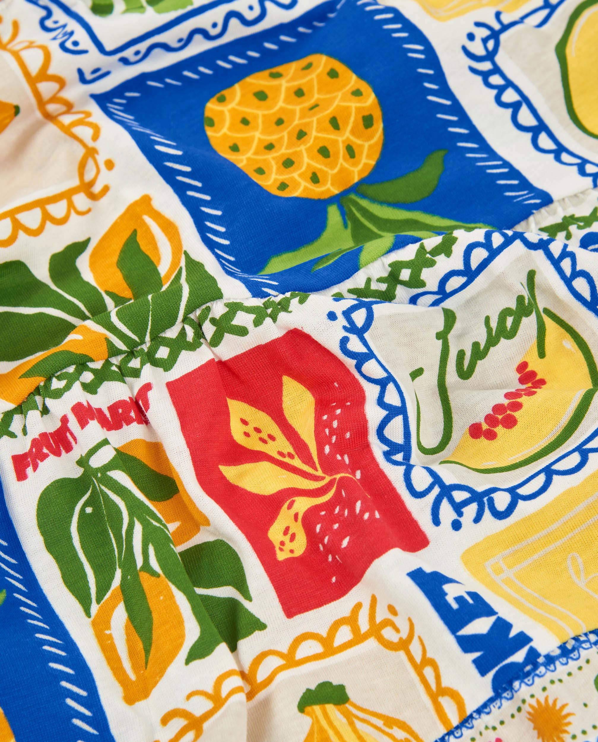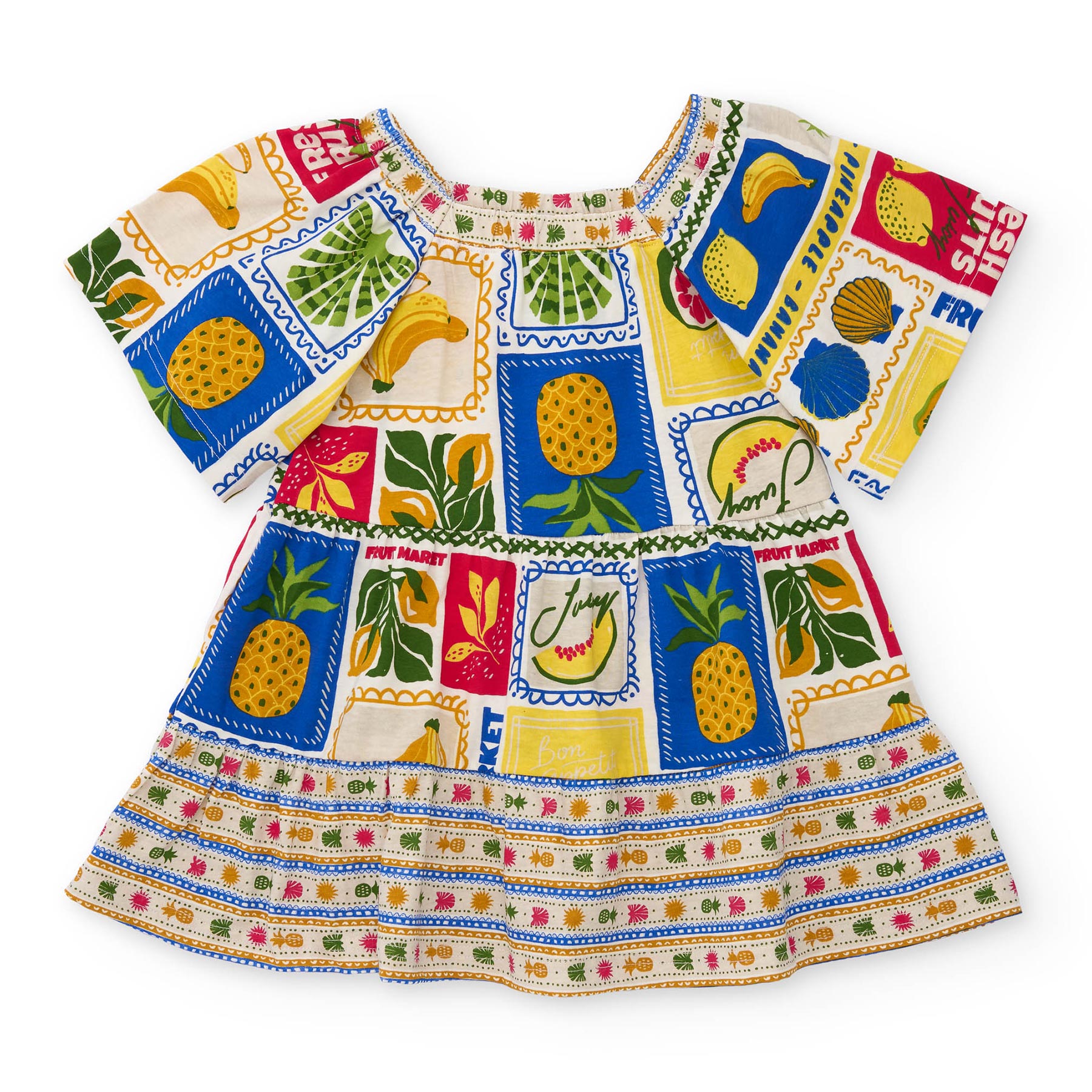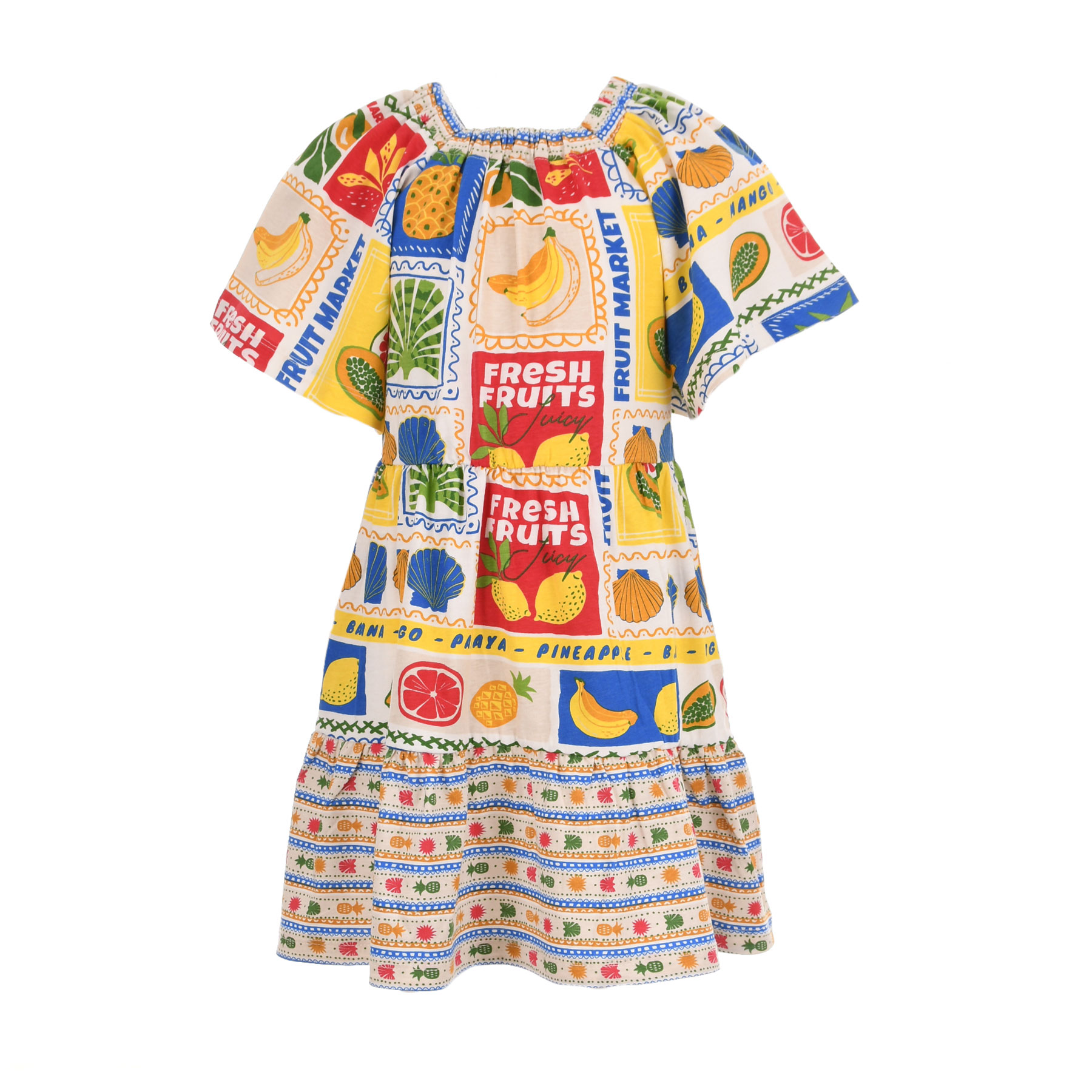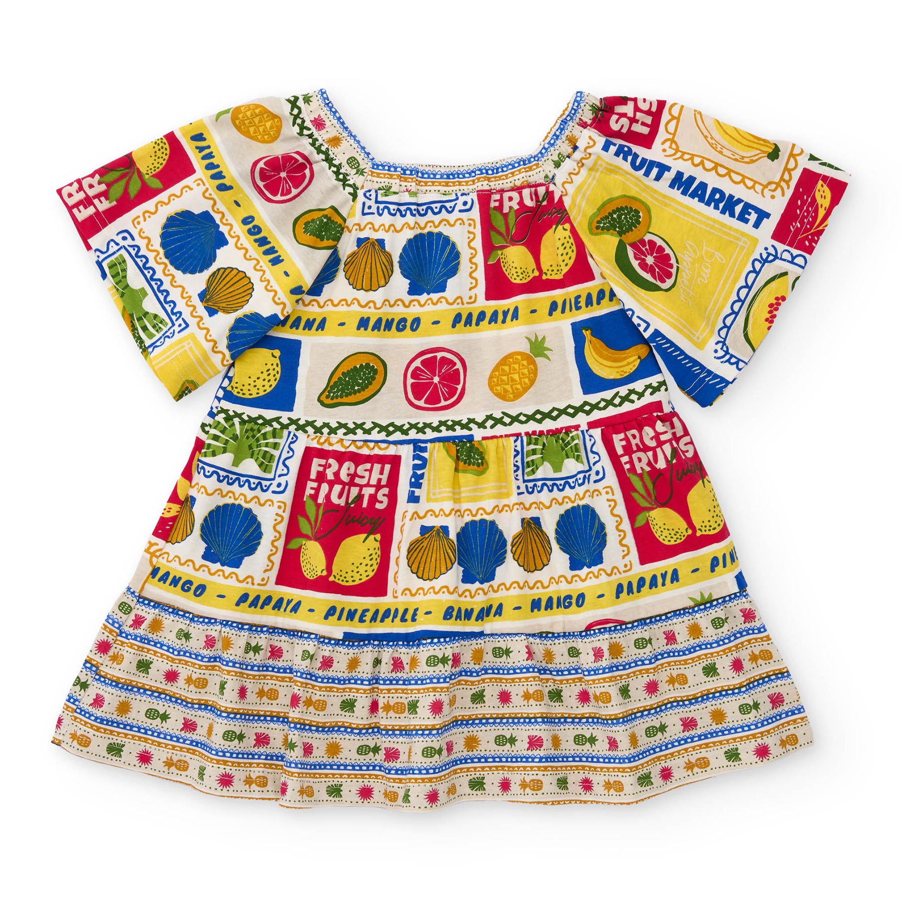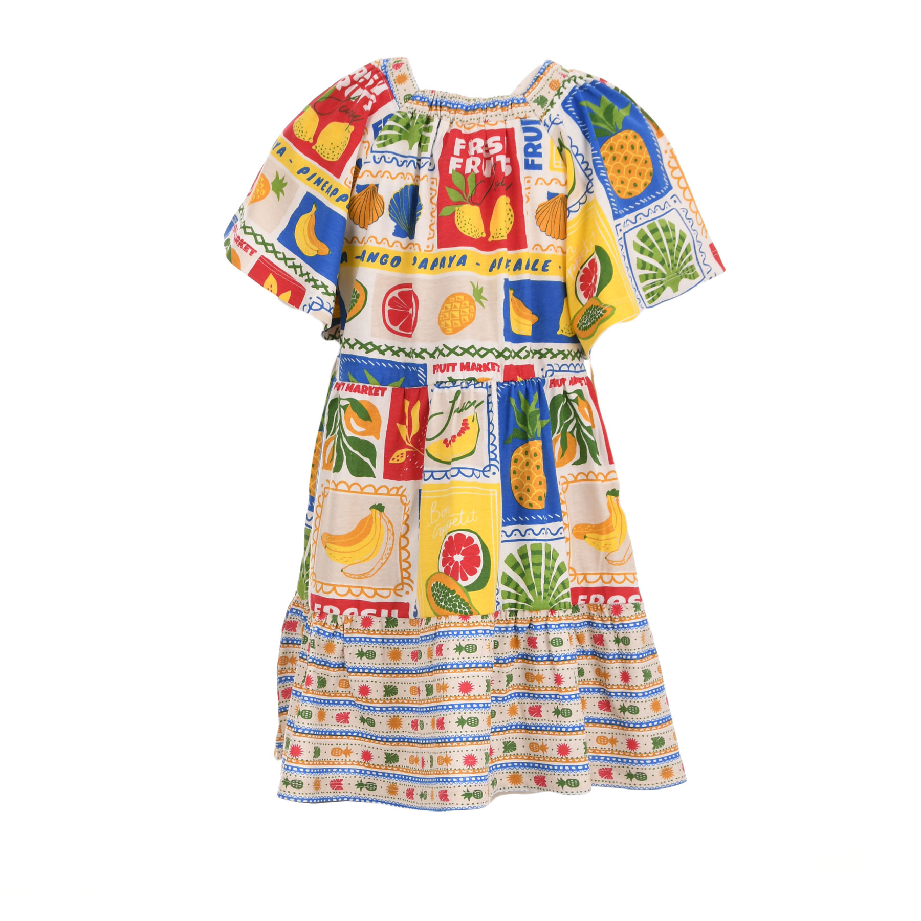 Το παιδικό φόρεμα για κορίτσια Nathkids σε εντυπωσιακό tropical print είναι η ιδανική επιλογή για χαρούμενες και ξεχωριστές καλοκαιρινές εμφανίσεις. Με πολύχρωμα μοτίβα εμπνευσμένα από εξωτικά φρούτα όπως ανανά, μπανάνα, παπάγια και mango, σε συνδυασμό με ζωντανές αποχρώσεις κόκκινου, κίτρινου, μπλε και πράσινου, δημιουργεί ένα παιχνιδιάρικο και άκρως καλοκαιρινό look.Διαθέτει άνετη γραμμή με ελαστική λαιμόκοψη που εφαρμόζει απαλά και προσφέρει ευκολία στο ντύσιμο. Τα κοντά, φαρδιά μανίκια χαρίζουν δροσερή αίσθηση και ελευθερία κινήσεων, ενώ η ελαφρώς σφηνοειδής φούστα με διακοσμητικό τελείωμα στο κάτω μέρος προσθέτει κίνηση και girly χαρακτήρα.Κατασκευασμένο από ελαφρύ και αναπνεύσιμο ύφασμα, το παιδικό φόρεμα Nathkids είναι ιδανικό για το σχολείο, τις βόλτες, τις καλοκαιρινές διακοπές και τις καθημερινές δραστηριότητες. Συνδυάζεται εύκολα με σανδάλια ή sneakers για άνετο και στιλάτο αποτέλεσμα.Ένα ζωηρό και μοντέρνο παιδικό φόρεμα tropical print για κορίτσια που αγαπούν τα έντονα χρώματα και τα καλοκαιρινά, εξωτικά σχέδια.